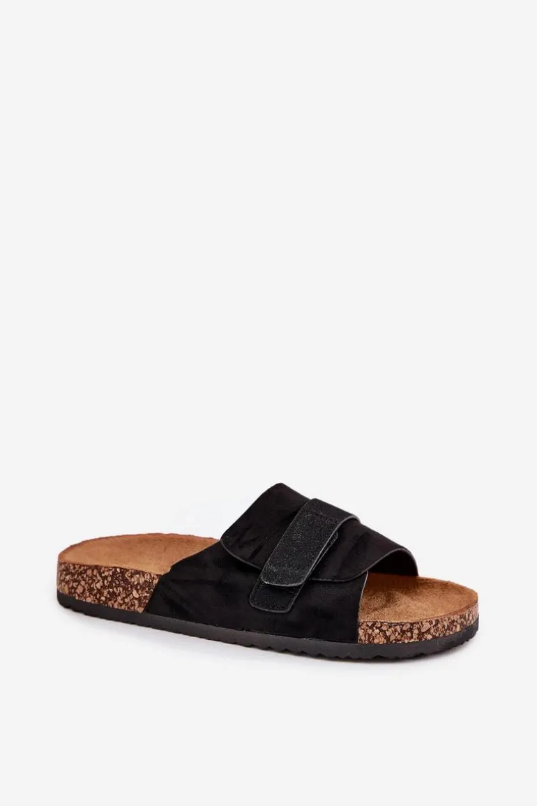 Klapki damskie wykonane z eko zamszu, osadzone na korkowej platformie, to doskonała propozycja na ciepłe dni. Dzięki profilowanej wkładce zapewniają wygodę przez cały dzień. Pasek zapinany na rzep umożliwia łatwe dopasowanie do stopy, a korkowa platforma dodaje lekkości i stylowego charakteru. Idealne do codziennych stylizacji. Przy wyborze rozmiaru prosimy sugerować się tabelą rozmiarów.
