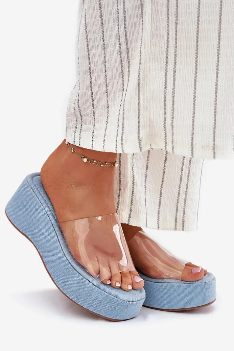 Damskie klapki z transparentnym paskiem to połączenie nowoczesnego stylu i wygody. Model ten został osadzony na koturnie, który subtelnie wysmukla sylwetkę, a jednocześnie zapewnia stabilność podczas chodzenia. Miękka wkładka gwarantuje komfort nawet podczas długiego użytkowania. Te klapki świetnie uzupełnią zarówno codzienne, jak i bardziej eleganckie letnie stylizacje. Przy wyborze rozmiaru prosimy sugerować się tabelą rozmiarów.