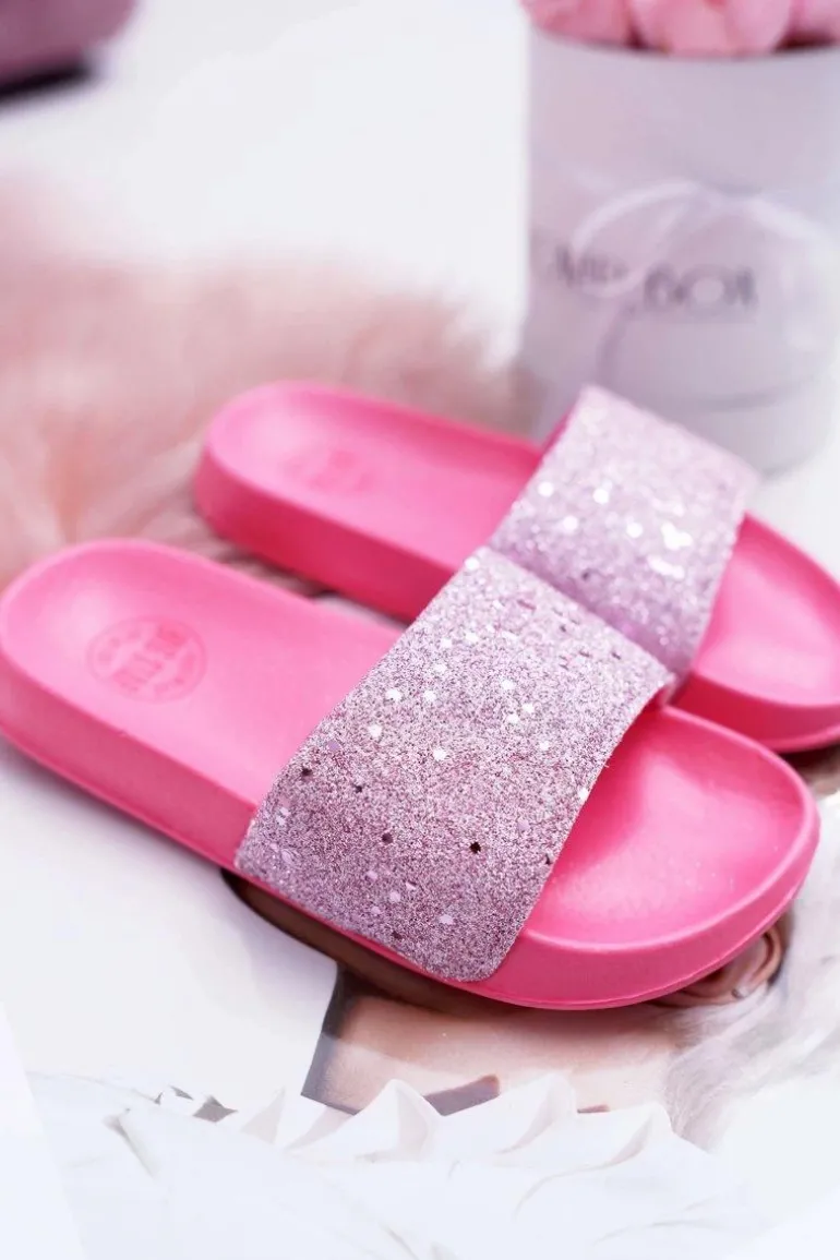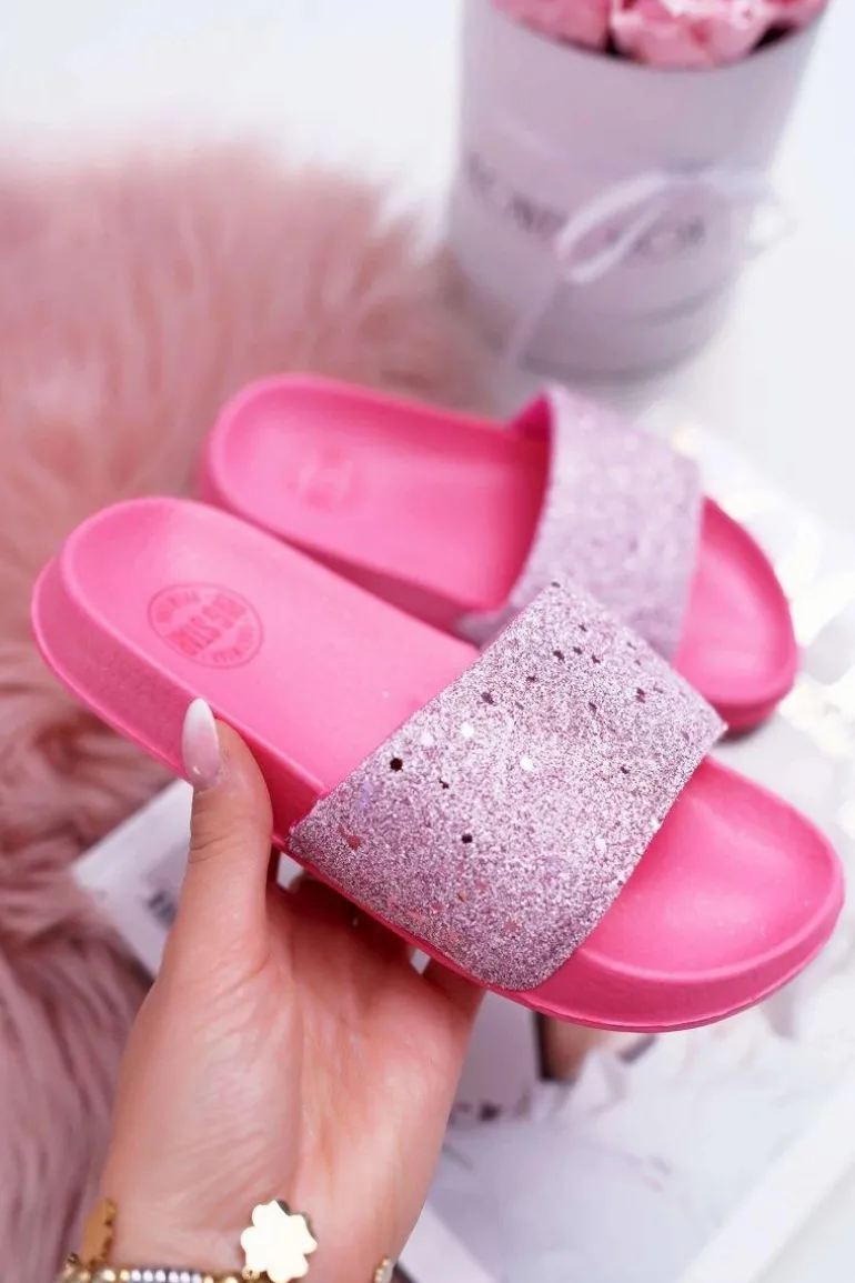 Klapki Dziecięce Młodzieżowe Big Star Różowe Brokatowe AA374088