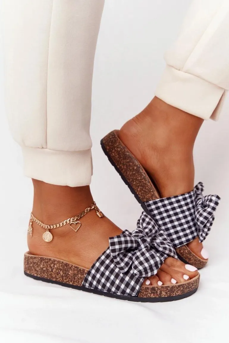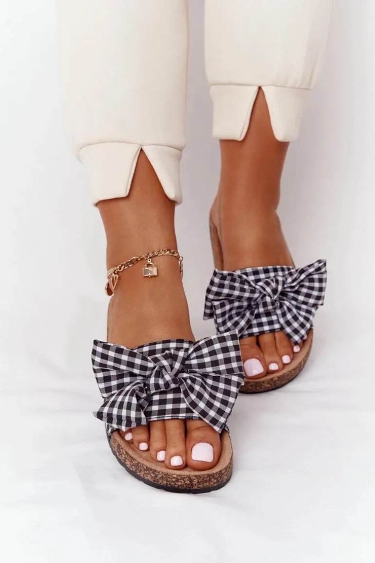 Wyjątkowe klapki damskie z kokardą. Buty posiadają profilowaną wkładkę, która zagwarantuje komfort. Modny fason w czarno-białą kratę urozmaici Twoje stylizacje! Przy wyborze rozmiaru prosimy sugerować się tabelą rozmiarów.