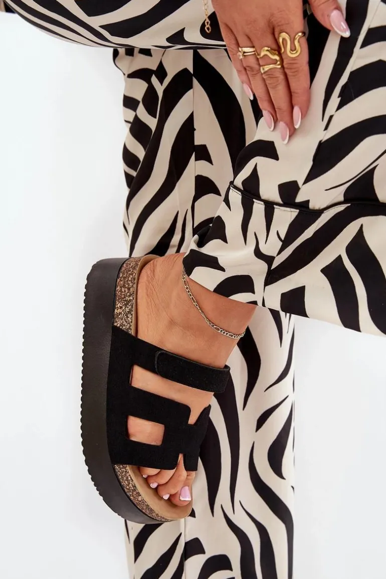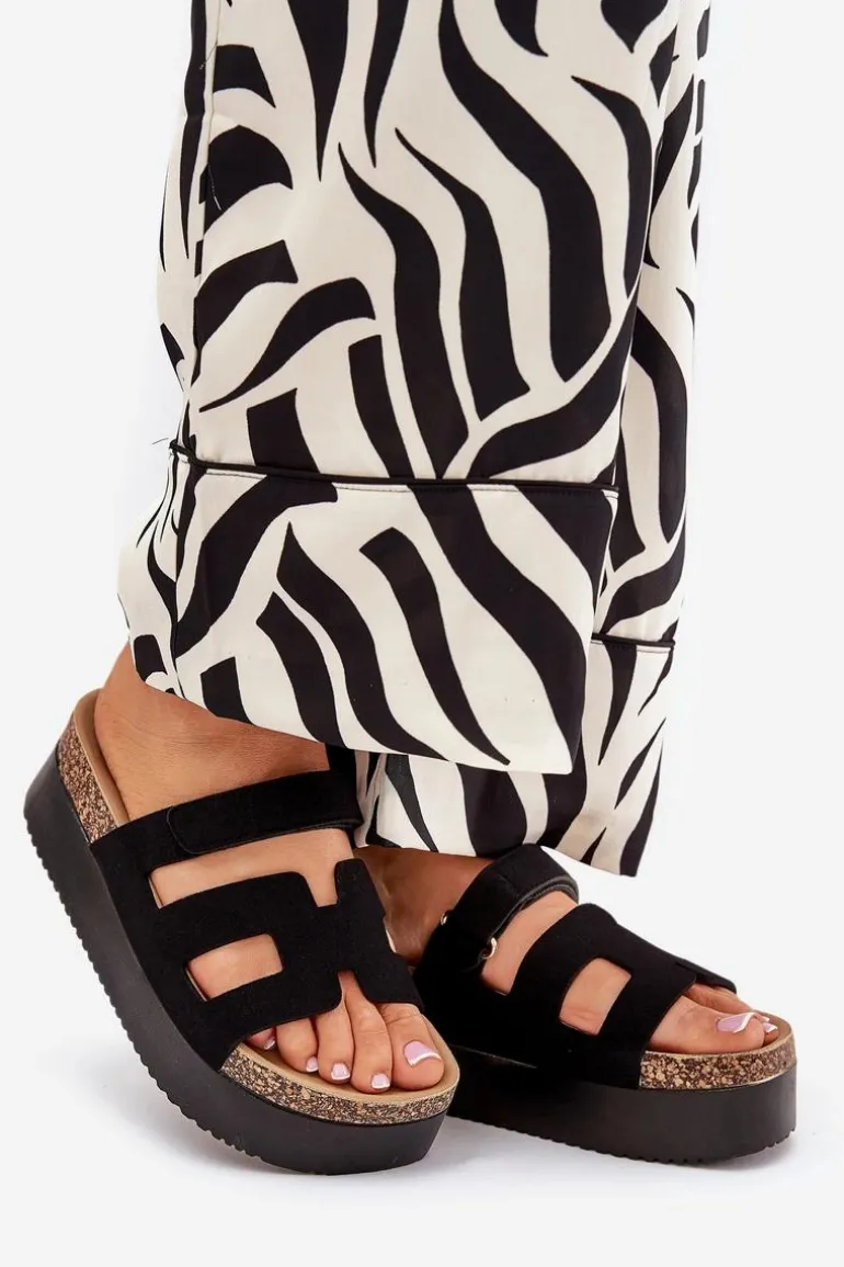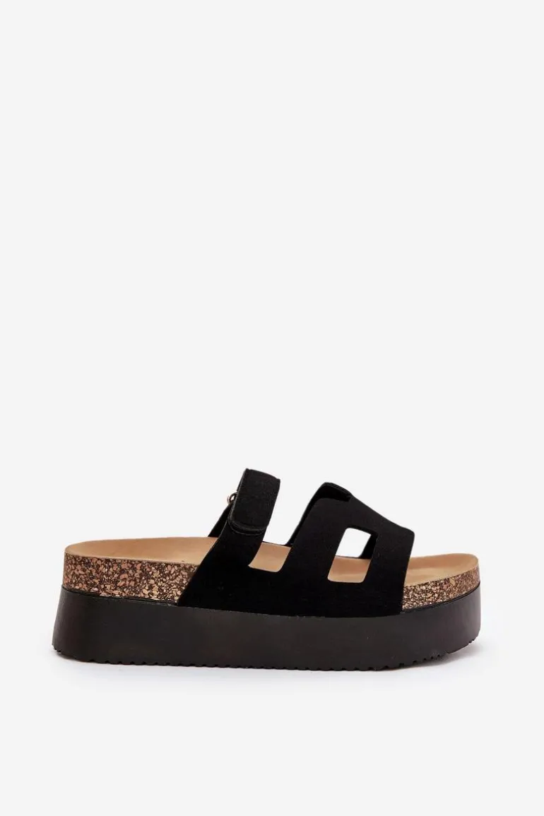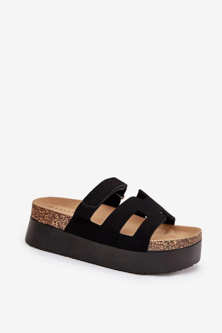 Klapki Na Masywnej Platformie Czarne Daldiva