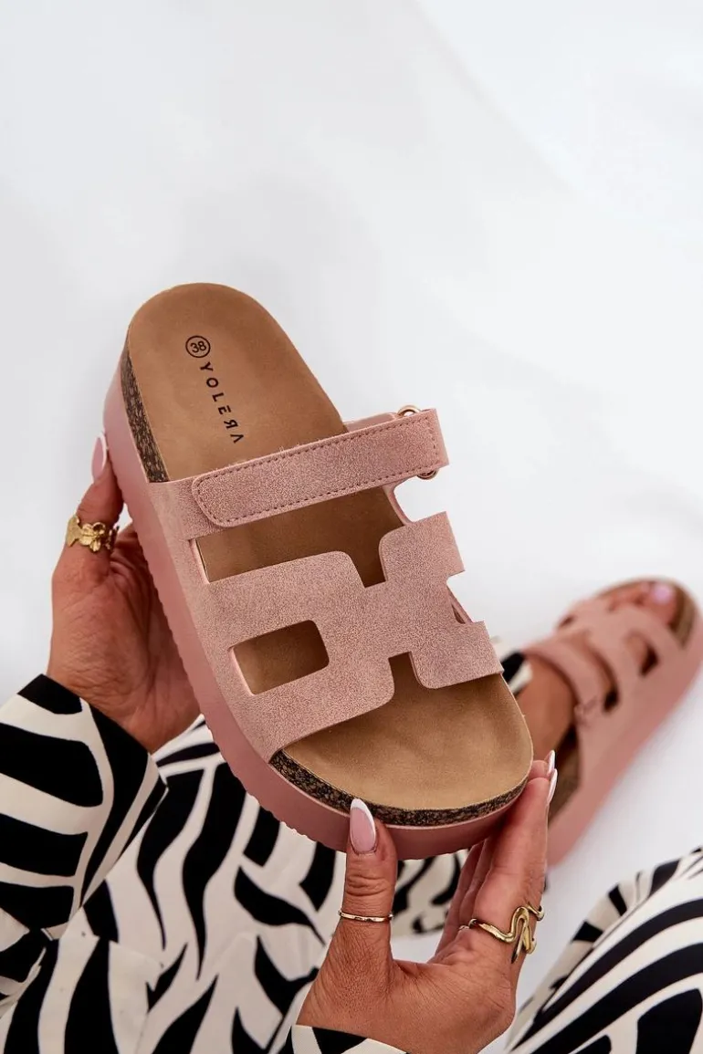 Klapki z eko zamszu to stylowa propozycja na ciepłe dni, wyróżniająca się masywną platformą, która dodaje lekkości i stabilności. Paski z wycięciami nadają im nowoczesnego charakteru, a zapięcie na rzep z przodu zapewnia dodatkową stabilizację stopy, co zwiększa komfort noszenia. Te klapki będą doskonałym wyborem, łącząc modny design z funkcjonalnością. Przy wyborze rozmiaru rosimy sugerować się tabelą rozmiarów.