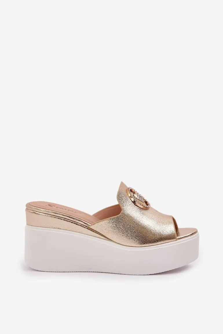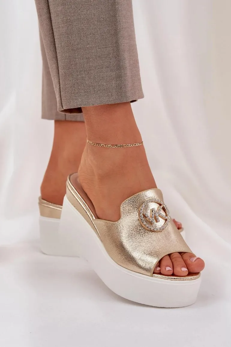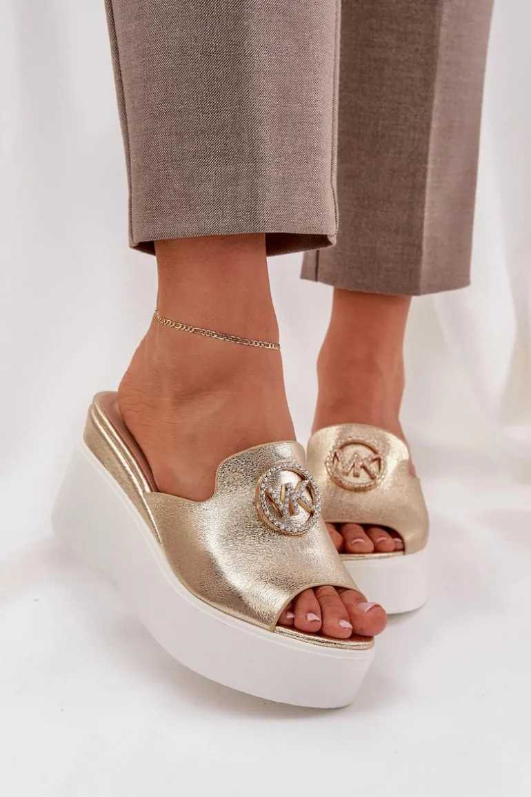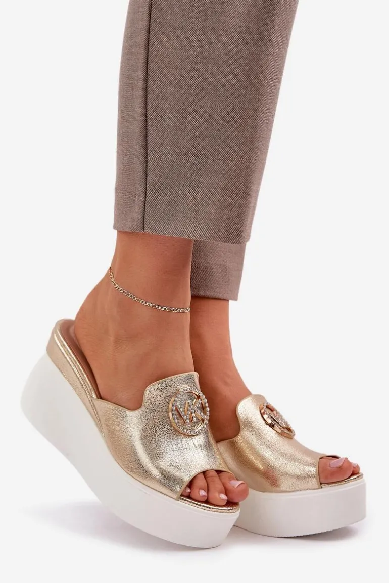 Klapki Na Platformie I Koturnie Z Ozdobą Złote Nanessia