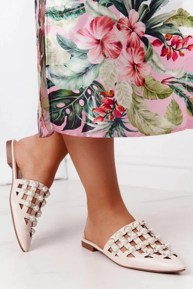 Klapki Z Cholewką I Perłami Beżowe Ripple