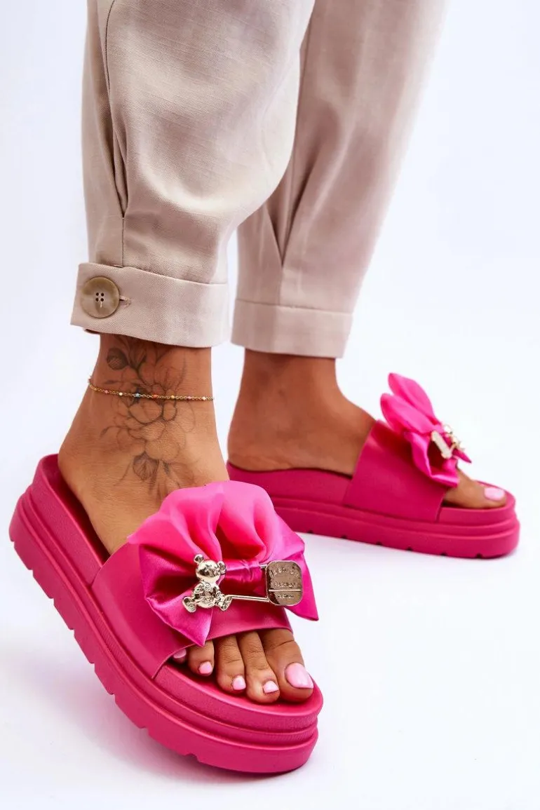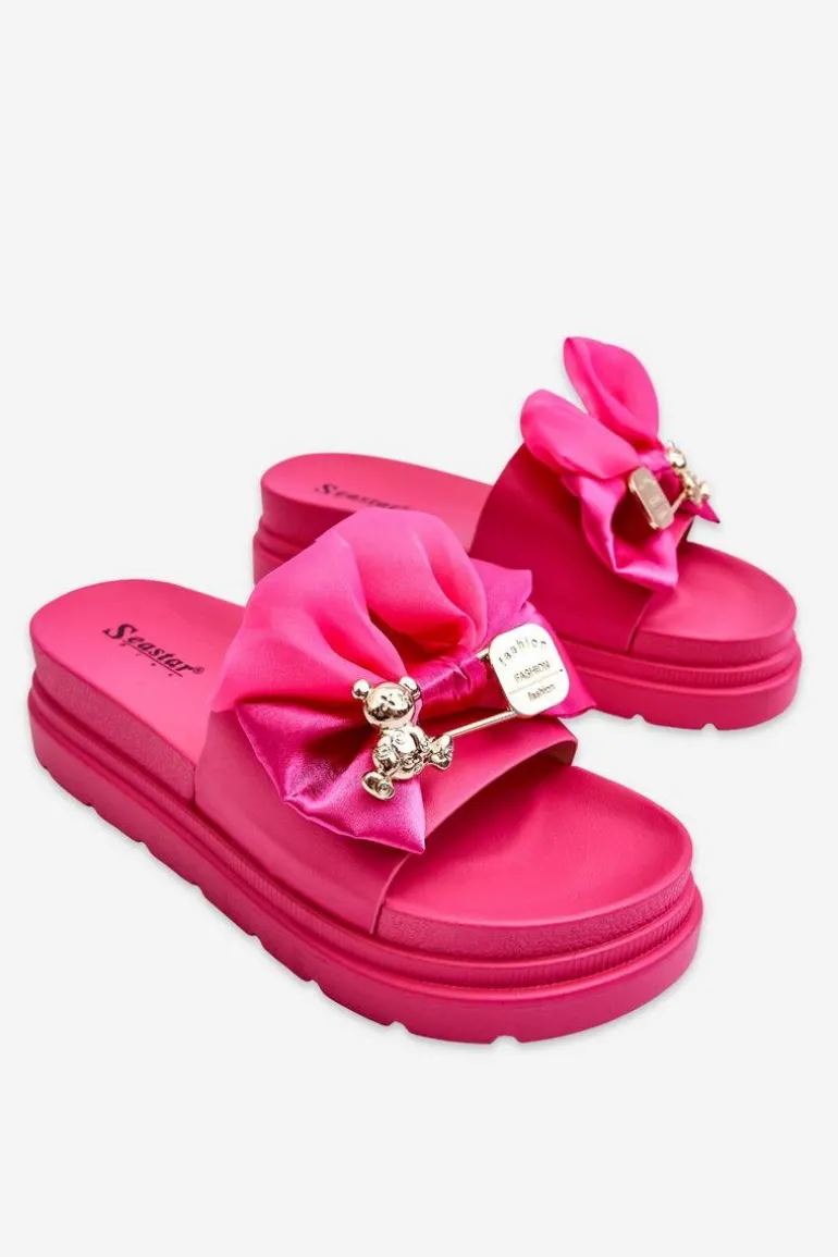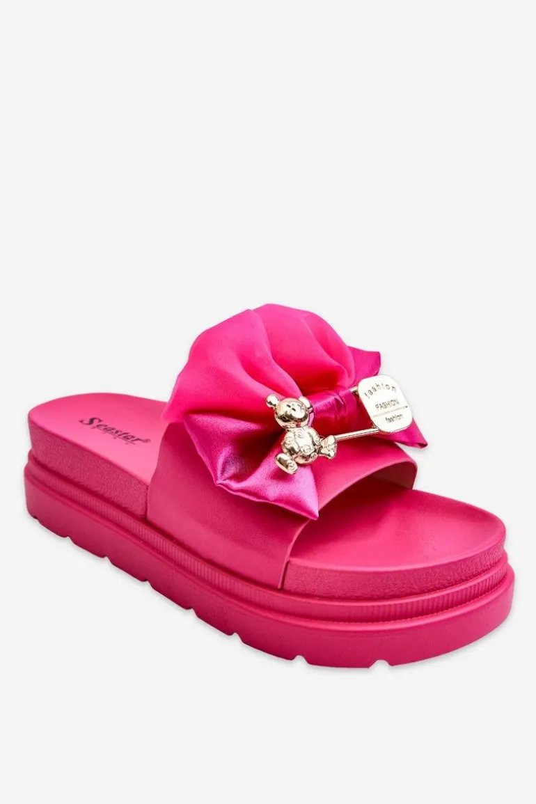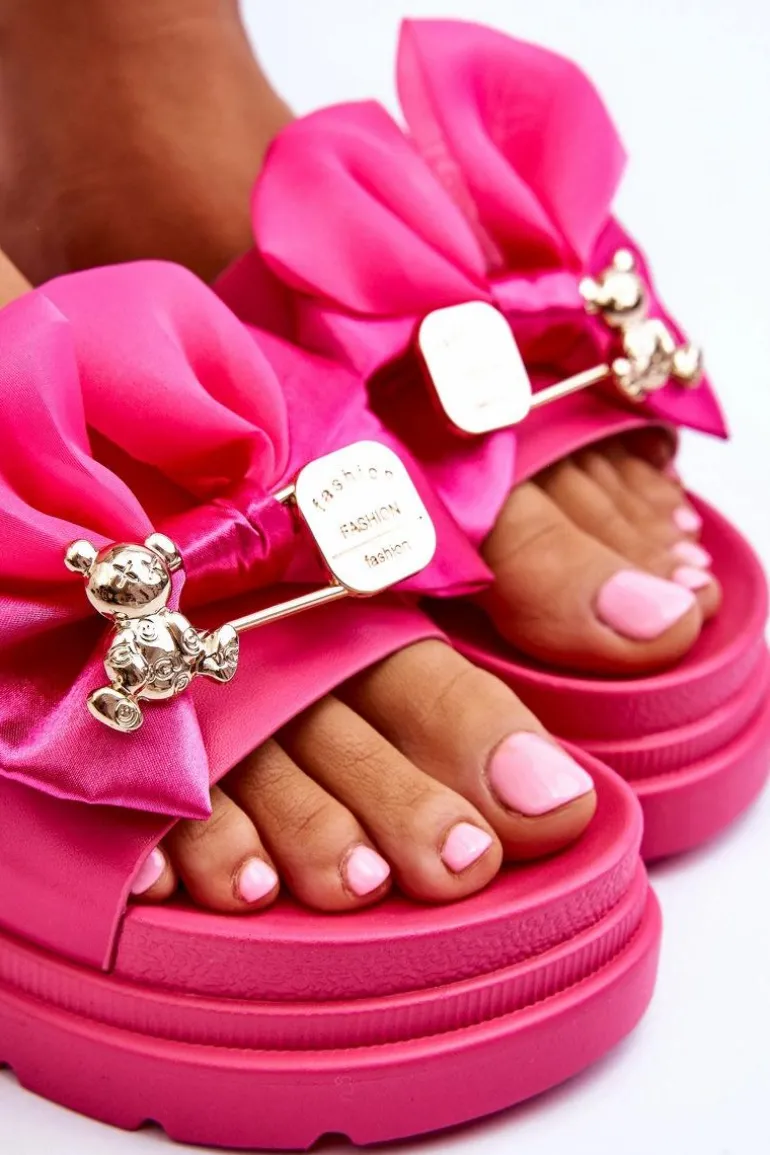 Klapki Z Kokardą I Ozdobnym Misiem Fuksja Suzy
