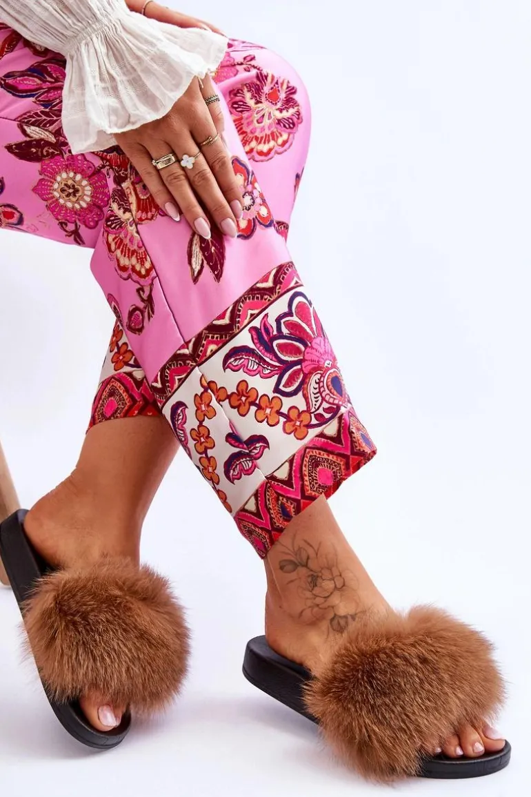 Klapki damskie z naturalnym futerkiem. Podeszwa wykonana jest z gumowego, lekkiego tworzywa. Delikatnie profilowana wkładka zadba o Twój komfort.