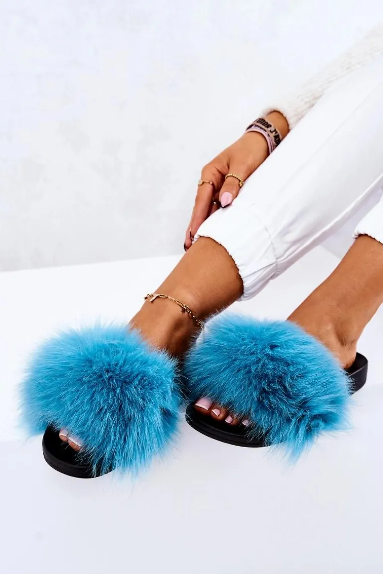Klapki damskie z naturalnym futerkiem. Podeszwa wykonana jest z gumowego, lekkiego tworzywa. Delikatnie profilowana wkładka zadba o Twój komfort.