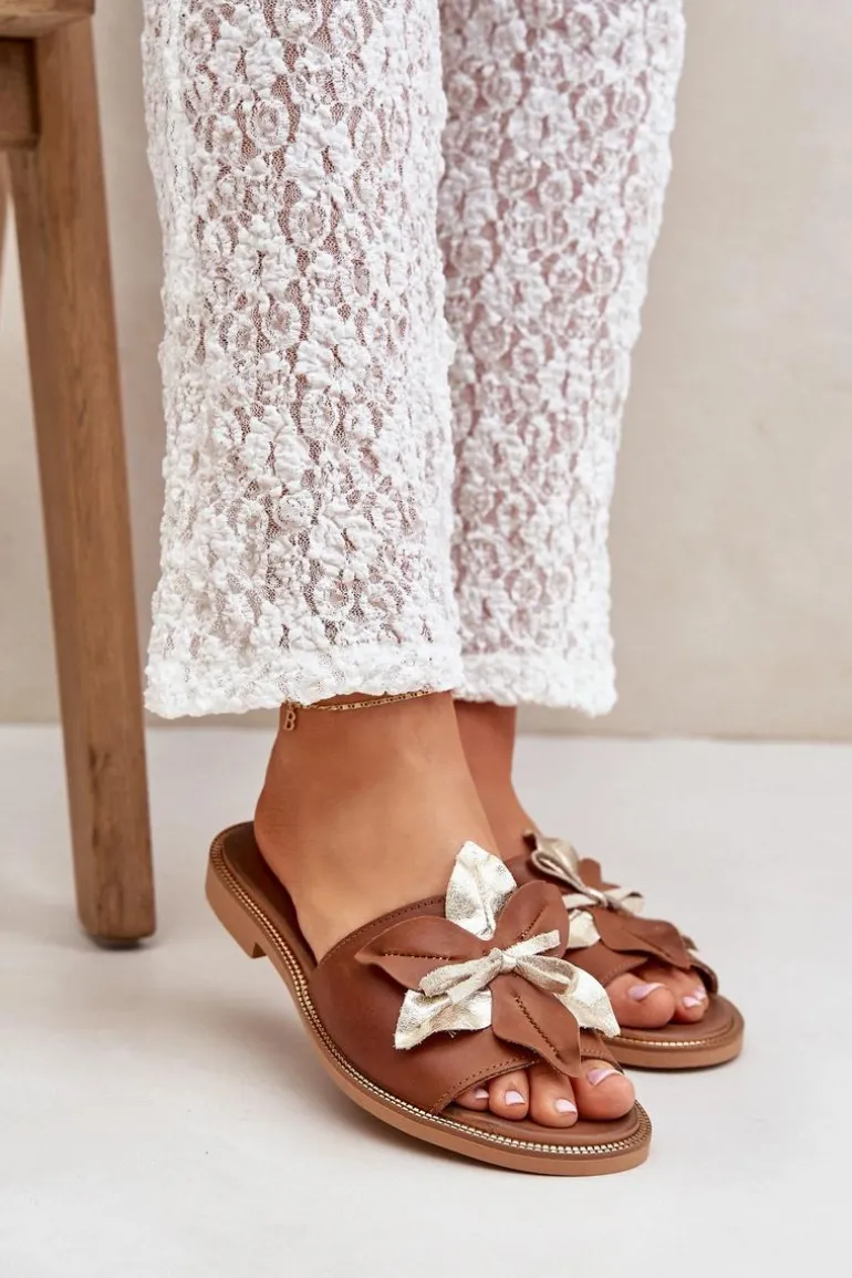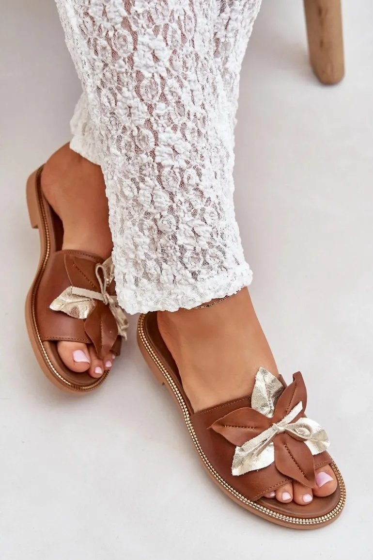 Damskie klapki ze skóry naturalnej stanowią znakomity wybór dla kobiet poszukujących połączenia elegancji z komfortem. Płaski obcas, zapewnia wygodę użytkowania przez cały dzień. Ozdoba nadaje im niepowtarzalny urok i elegancję. Model ten to idealny wybór zarówno do eleganckich stylizacji biurowych, jak i na codzienne wyjścia! Przy wyborze rozmiaru prosimy sugerować się tabelą rozmiarów.