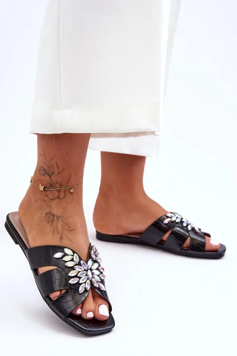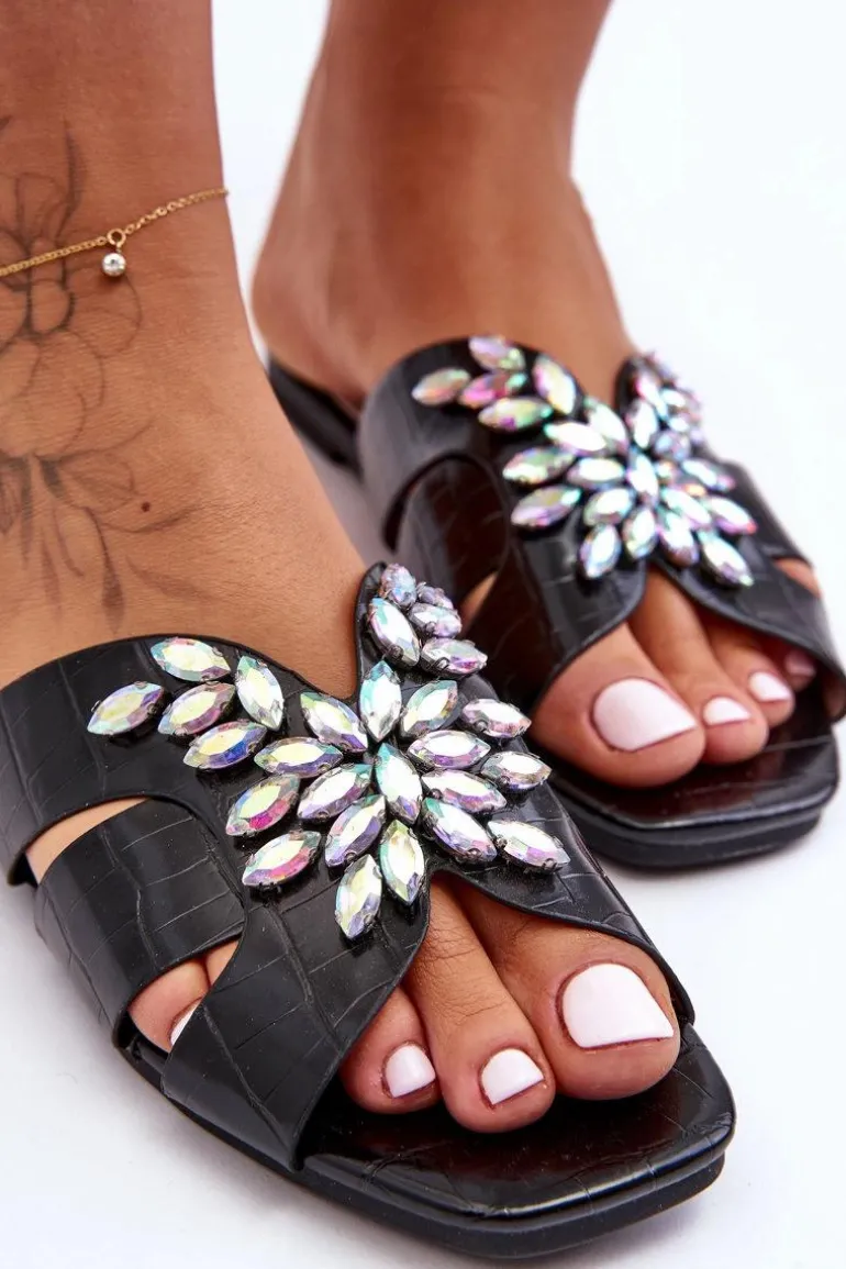 Klapki Z Ozdobnymi Kamieniami S.Barski 617-22 Czarne