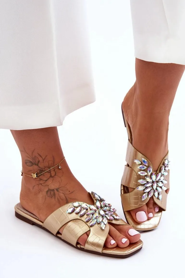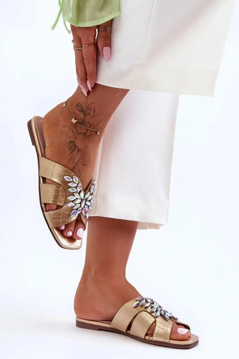 Klapki Z Ozdobnymi Kamieniami S.Barski 617-22 Złote