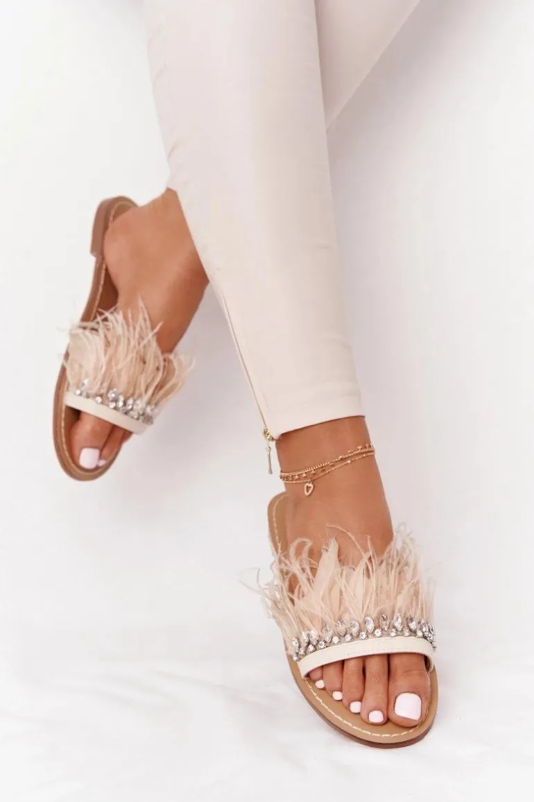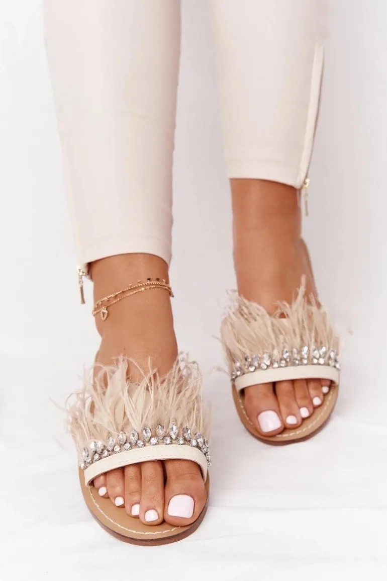 Klapki damskie marki LU BOO ozdobione piórami oraz srebrnymi kamieniami. Klapki to świetna propozycja dla kobiet ceniących sobie komfort w letnie dni! Koniecznie sprawdź całą naszą kolekcję butów marki LU BOO. Przy wyborze rozmiaru prosimy sugerować się tabelą rozmiarów.