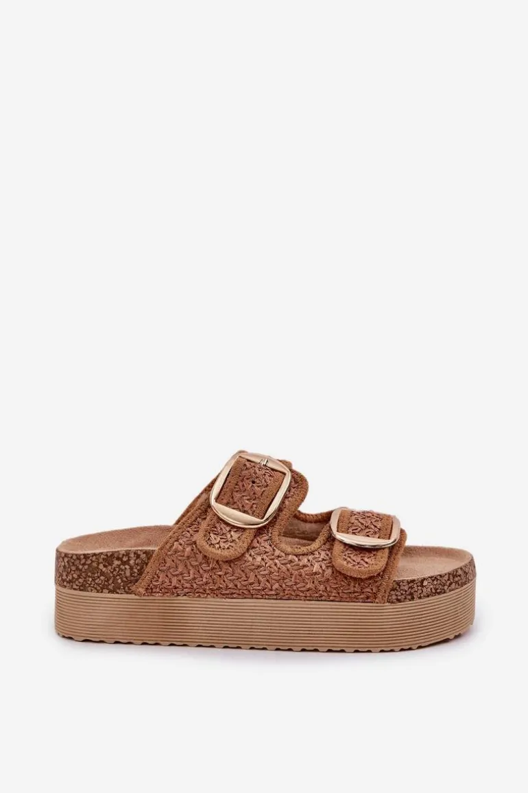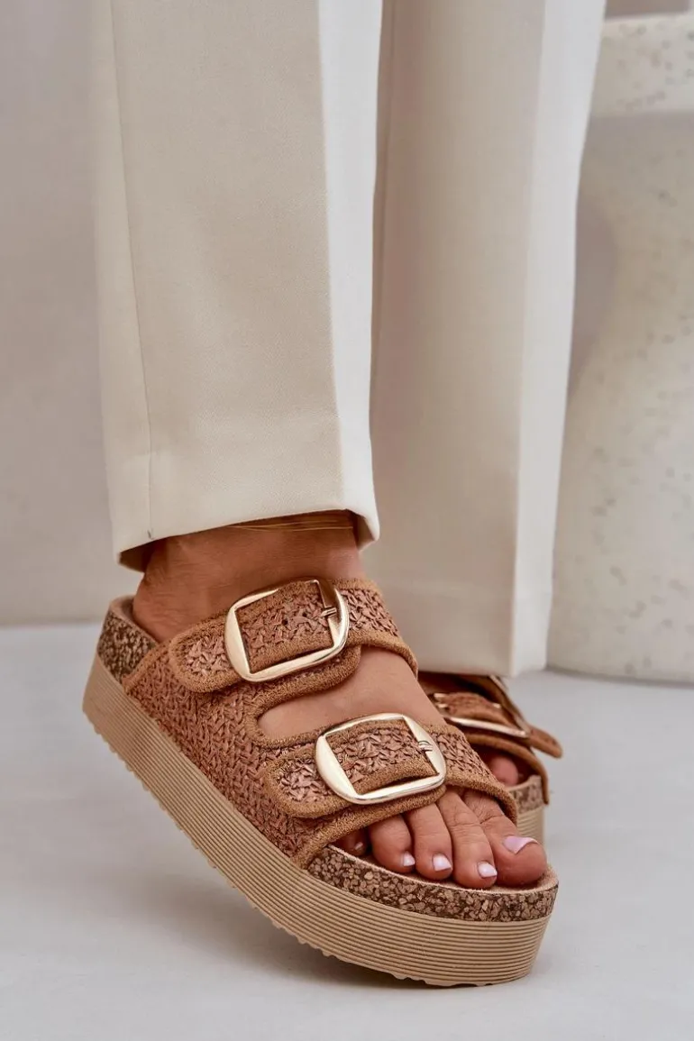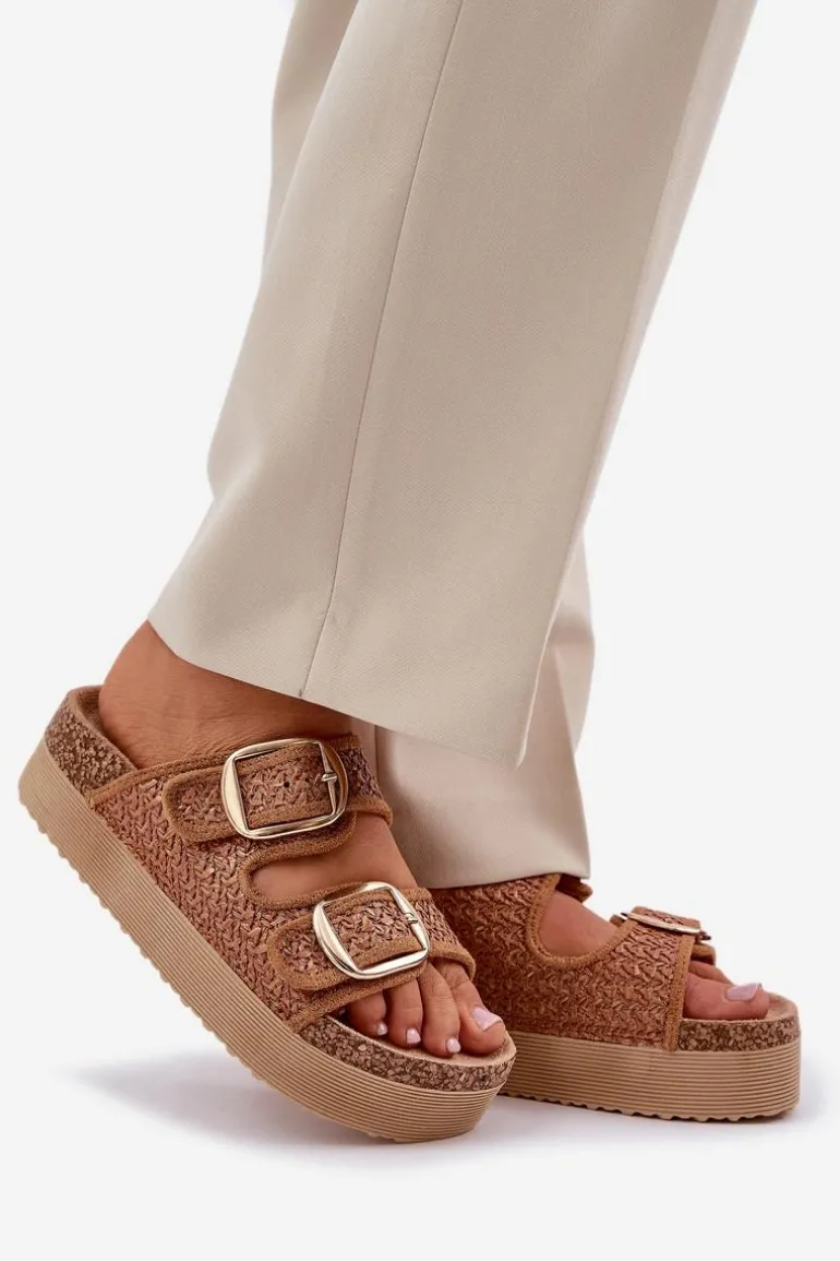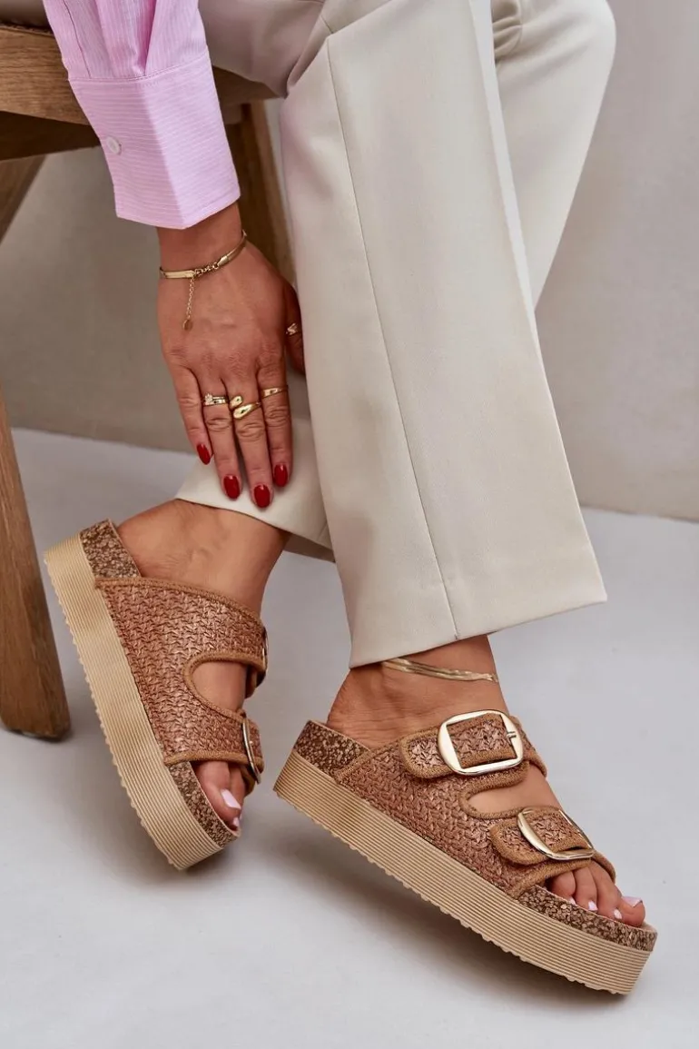 Klapki na masywnej platformie to doskonały wybór na letnie dni. Paski z klamrami umożliwiają idealne dopasowanie do stopy. Profilowana wkładka zapewnia komfort przez cały dzień, a solidna platforma dodaje lekkości i stabilności. Te klapki będą świetnym uzupełnieniem wakacyjnych stylizacji. Przy wyborze rozmiaru rosimy sugerować się tabelą rozmiarów.