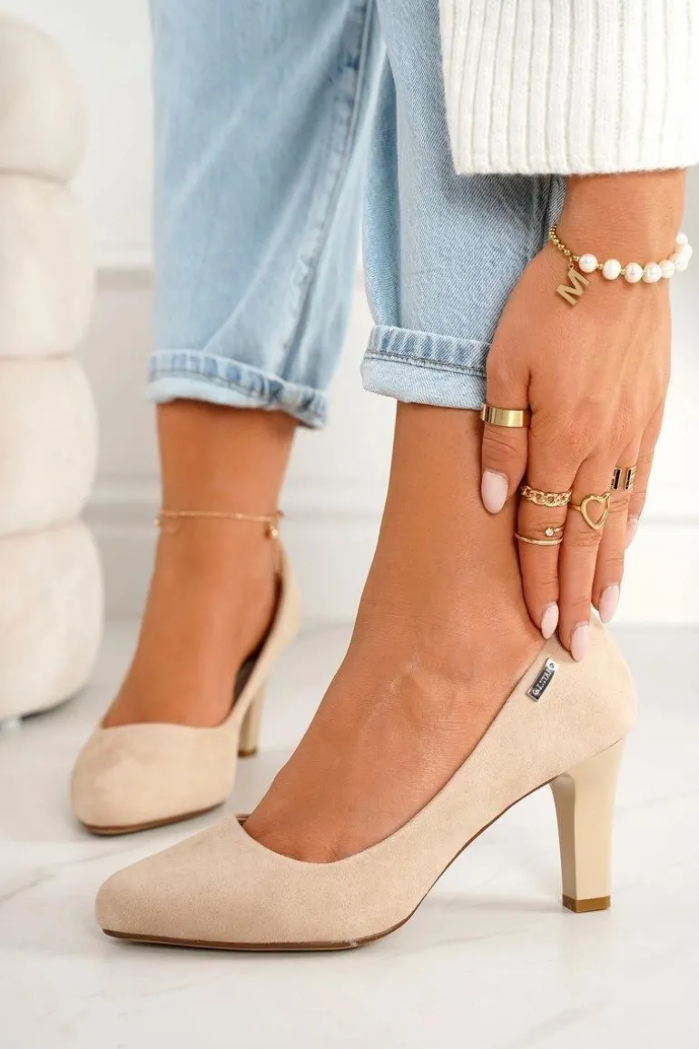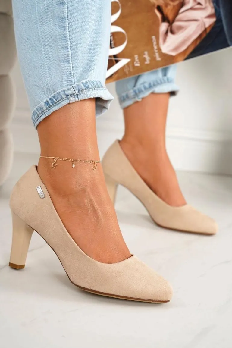 Klasyczne Czółenka Na Słupku Zamszowe Beżowe Eleanor
