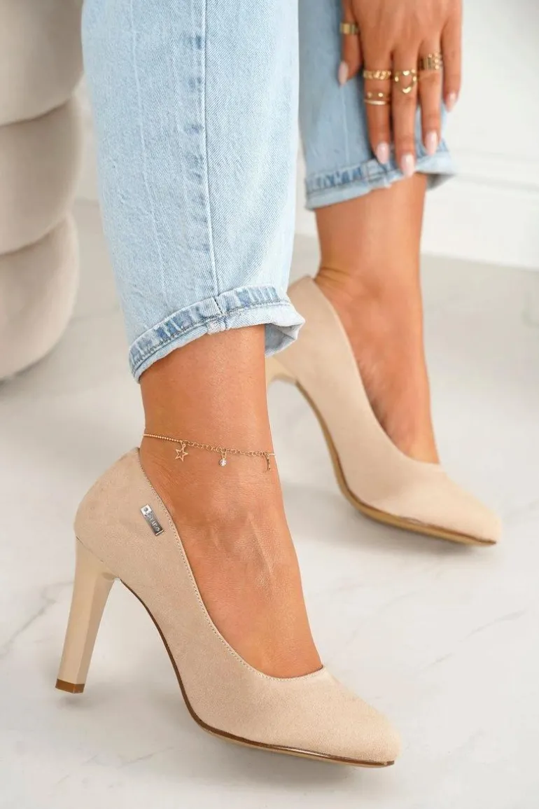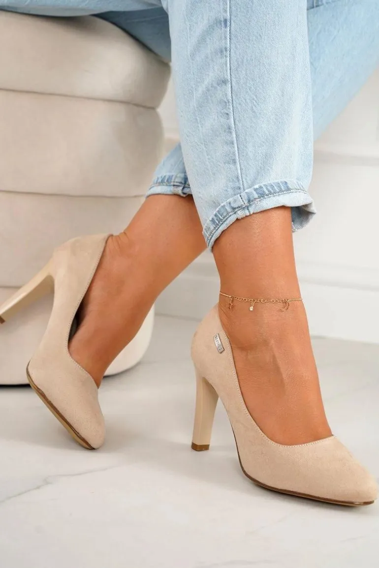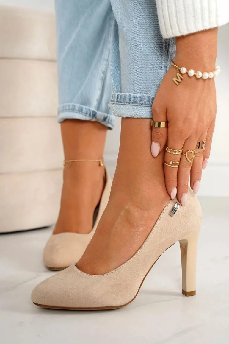 Klasyczne Czółenka Na Słupku Zamszowe Beżowe Eliana