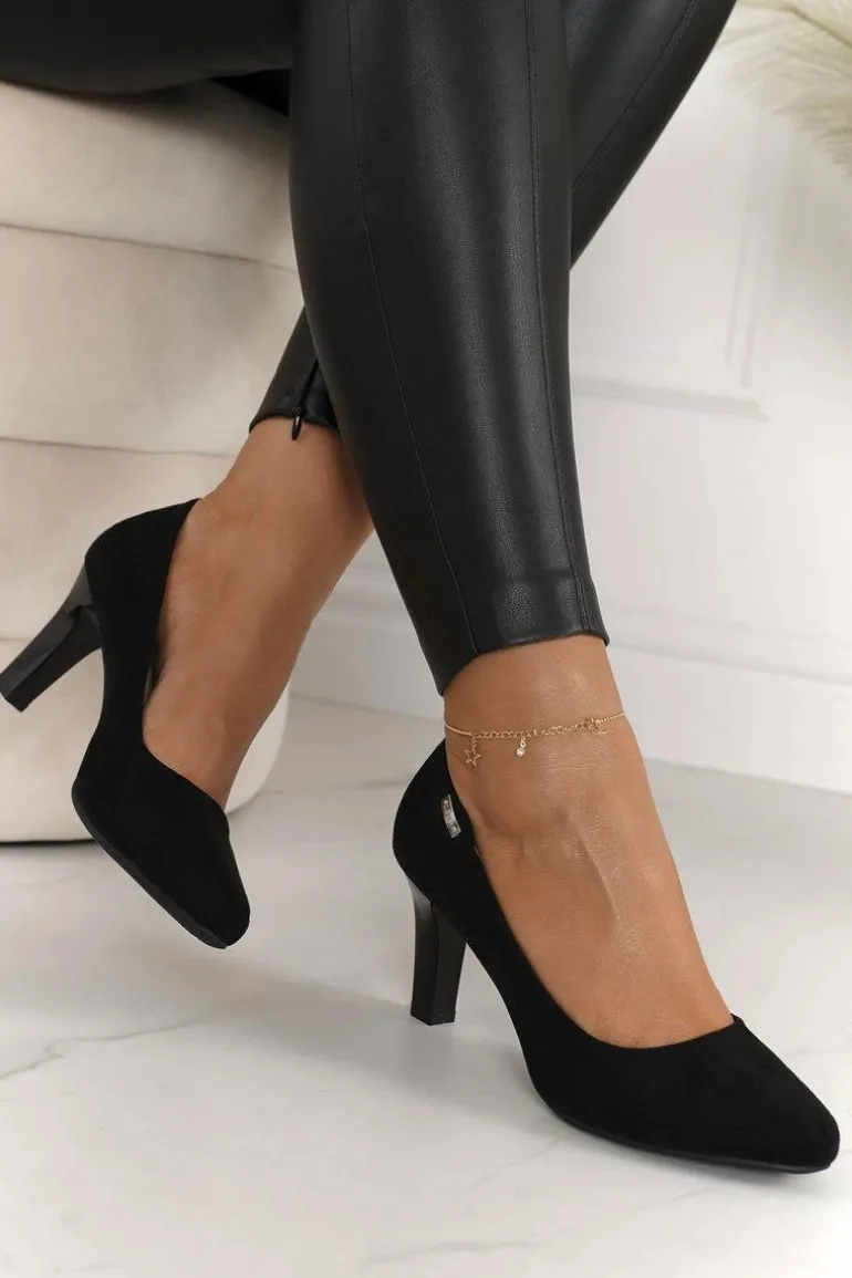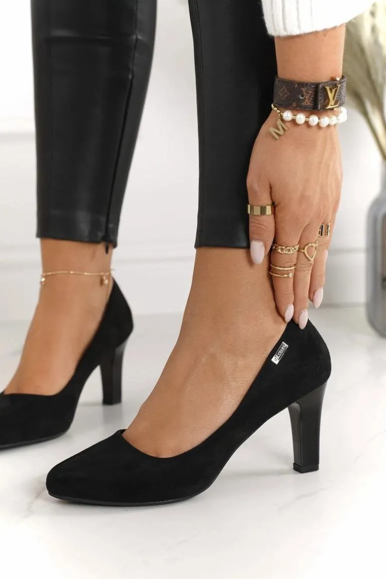 Klasyczne Czółenka Na Słupku Zamszowe Czarne Eleanor