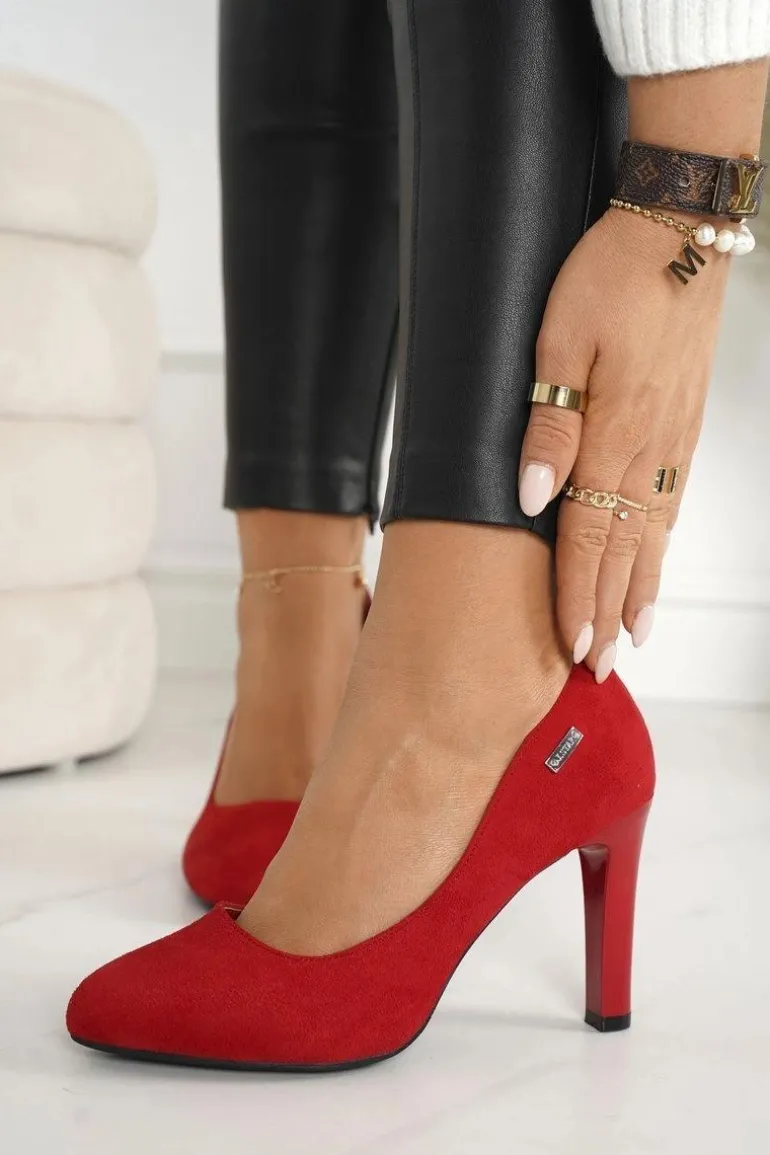 Klasyczne Czółenka Na Słupku Zamszowe Czerwone Eliana