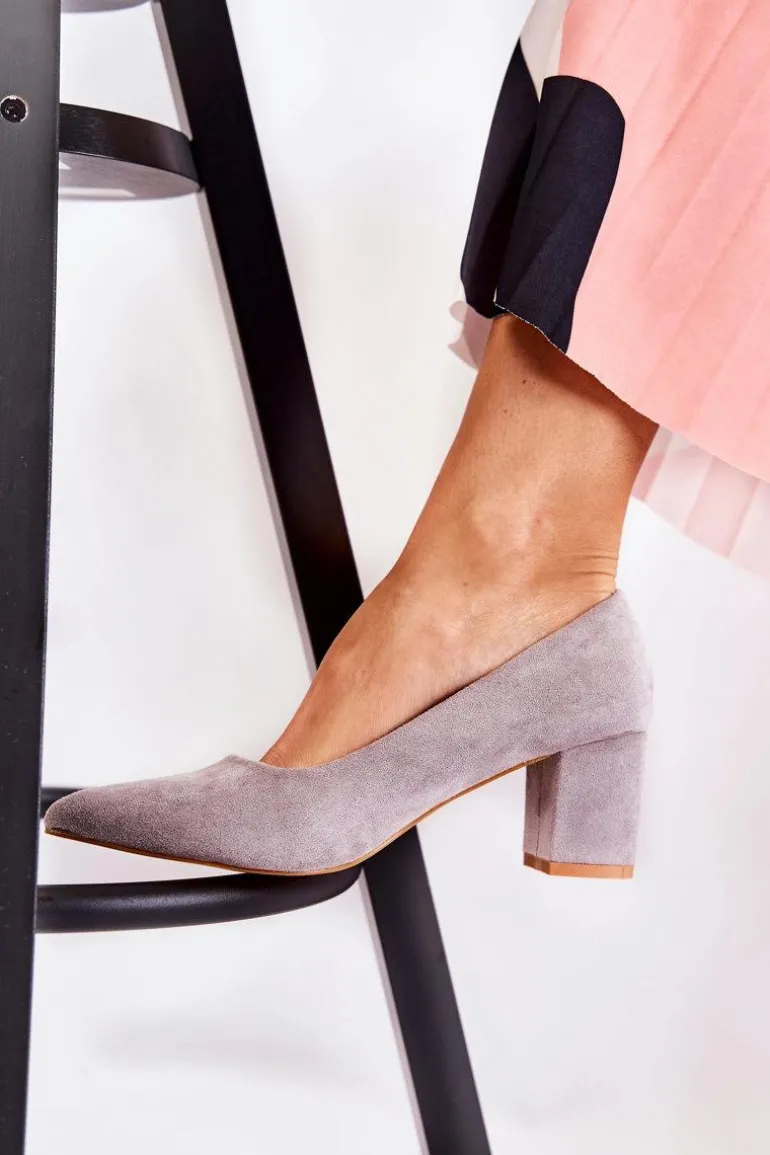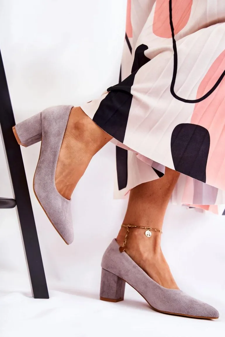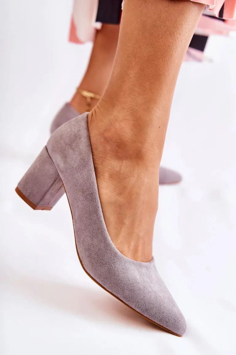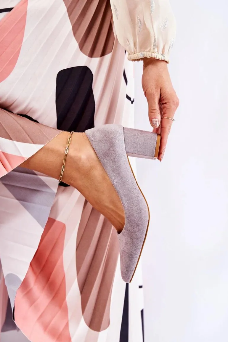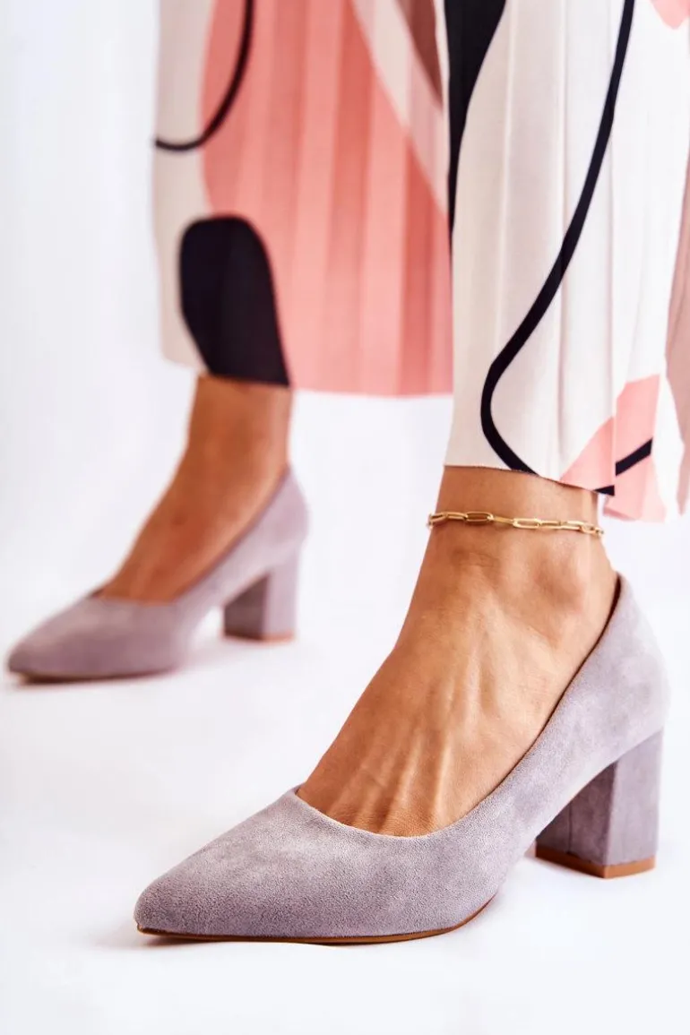 Klasyczne czółenka świetnie sprawdzą się do wielu stylizacji! Wykonane z eko zamszu. Osadzone na stabilnym słupku. Posiadają usztywniany zapiętek. O komfort zadba miękka, eko skórzana wkładka. Nosek w szpic. Model wsuwany. Świetnie sprawdzą się zarówno do pracy, jak i na różnego rodzaju uroczystości. Koniecznie sprawdź także pozostałe modele czółenek dostępnych w naszej ofercie! Przy wyborze rozmiaru prosimy kierować się tabelą rozmiarów