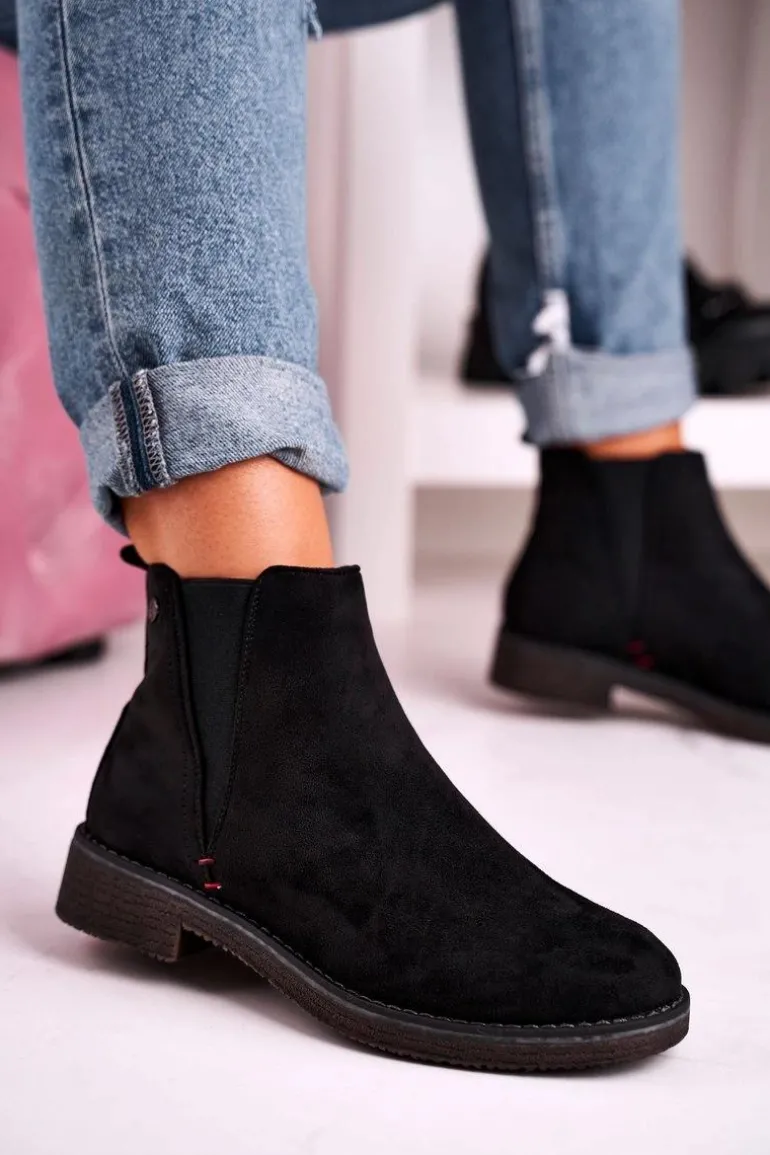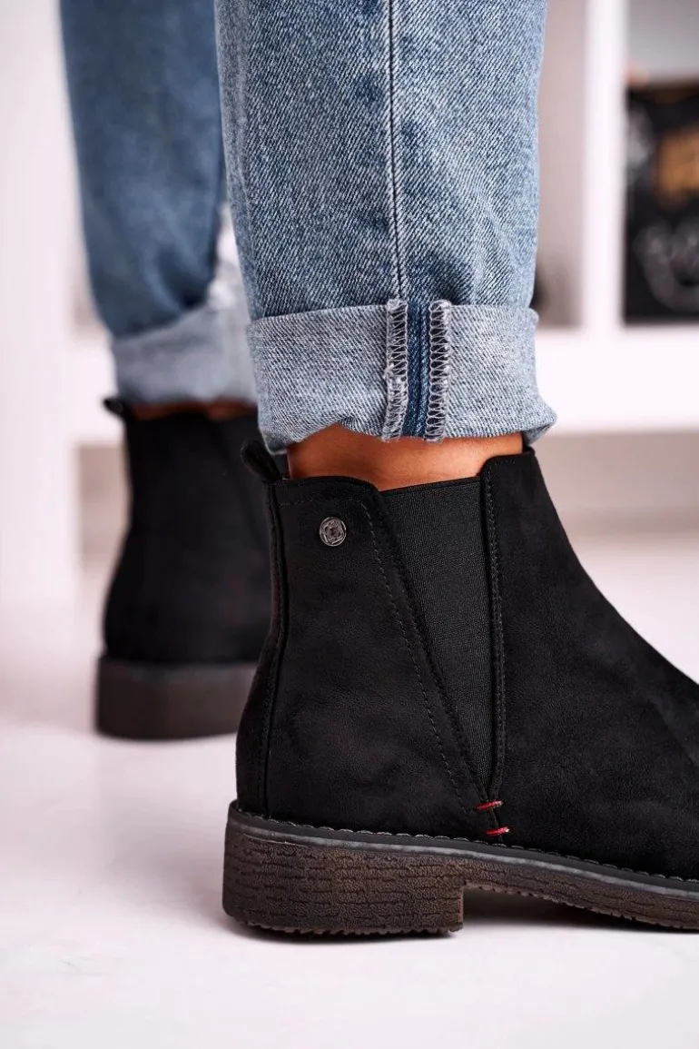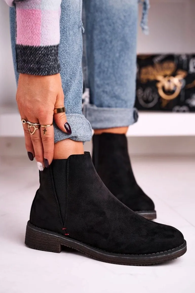 Klasyczne Damskie Botki Sztyblety Zamszowe Czarne Heather