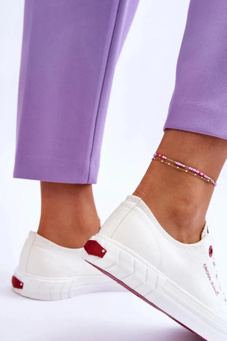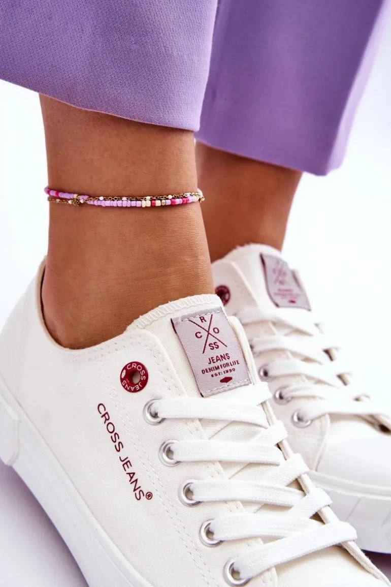 Świetne, klasyczne trampki marki Cross Jeans. Buty idealnie dopasowują się do kształtu stopy, dzięki materiałowej cholewce. Posiadają miękką wkładkę oraz antypoślizgową podeszwę. Klasyczny, sznurowany model, który łatwo dopasujesz do tęgości stopy. Buty posiadają wzmocniony, gumowy nosek oraz usztywniany zapiętek. Na boku znajduje się logo marki Cross Jeans. Przy wyborze rozmiaru prosimy sugerować się tabelą rozmiarów.
