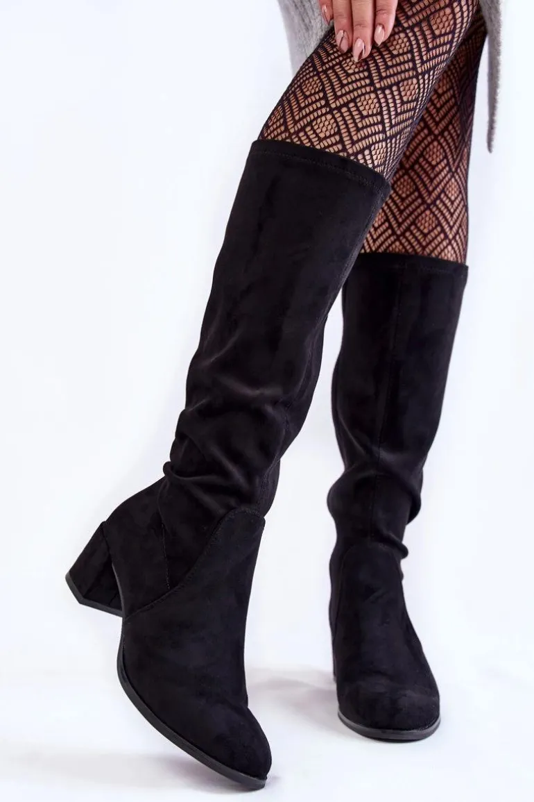 Klasyczne, damskie kozaki osadzone na niewysokim, stabilnym słupku świetnie sprawdzą się w przejściowym sezonie. Posiadają usztywnienie oraz ocieplenie w postaci delikatnego futerka na wysokości stopy. Cholewka wykonana z miłego w dotyku eko zamszu i zapinana na całej długości na zamek błyskawiczny. Miękka, ocieplana wkładka zapewni komfort podczas użytkowania. Przy wyborze rozmiaru prosimy sugerować się tabelą rozmiarów.