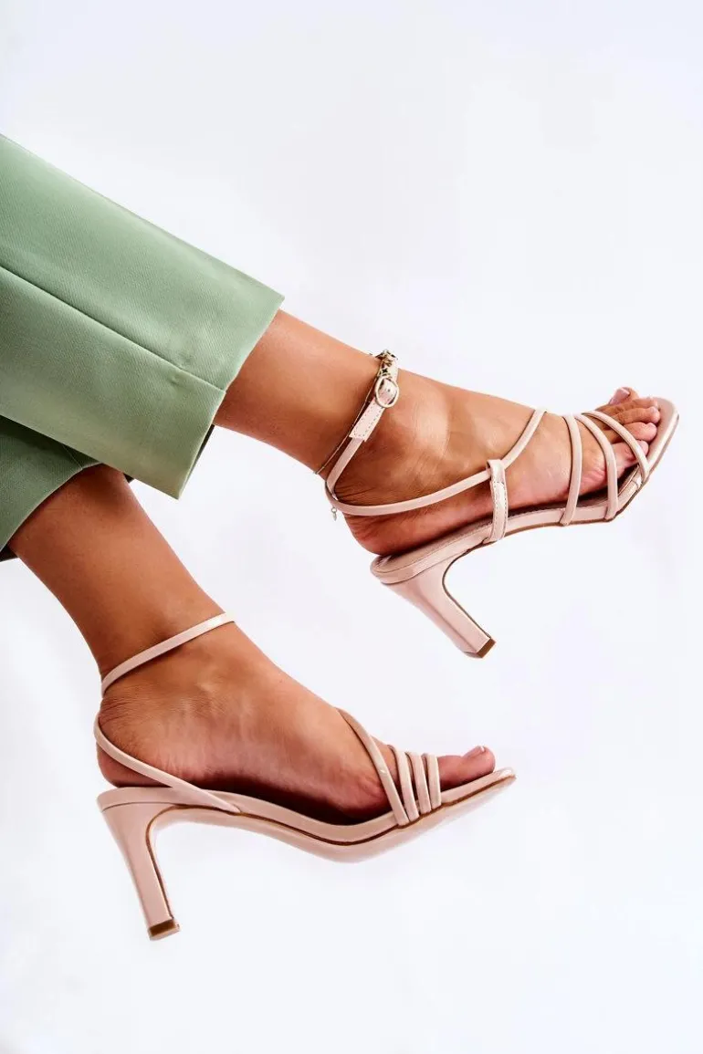 Sandały damskie zostały wykonane z eko skóry. Posiadają cienkie paseczki, dzięki którym są niezwykle przewiewne. Idealne buty na różnego rodzaju uroczystości w upalne dni! Osadzone na słupku. Model z odkrytym, kwadratowym noskiem. Buty zapinane na sprzączkę z regulowanym paskiem. Koniecznie sprawdź pozostałe modele sandałek na obcasie! Przy wyborze rozmiaru prosimy sugerować się tabelą rozmiarów.