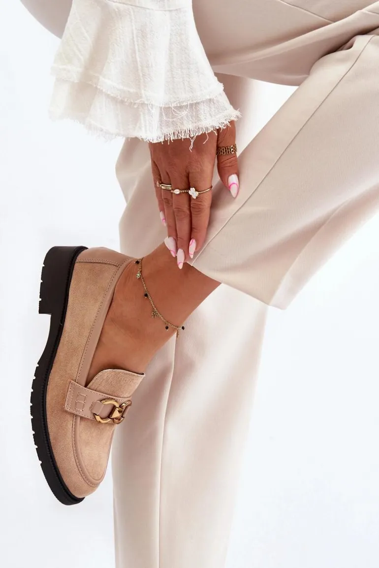 Klasyczne mokasyny wykonane z eko zamszu. Osadzone na płaskim obcasie. Z przodu ozdoba. Wkładka ze skóry ekologicznej zadba o wygodę podczas użytkowania. Idealny model do wielu wiosenno-letnich stylizacji! Koniecznie powinnaś je mieć! Przy wyborze rozmiaru prosimy sugerować się tabelą rozmiarów.