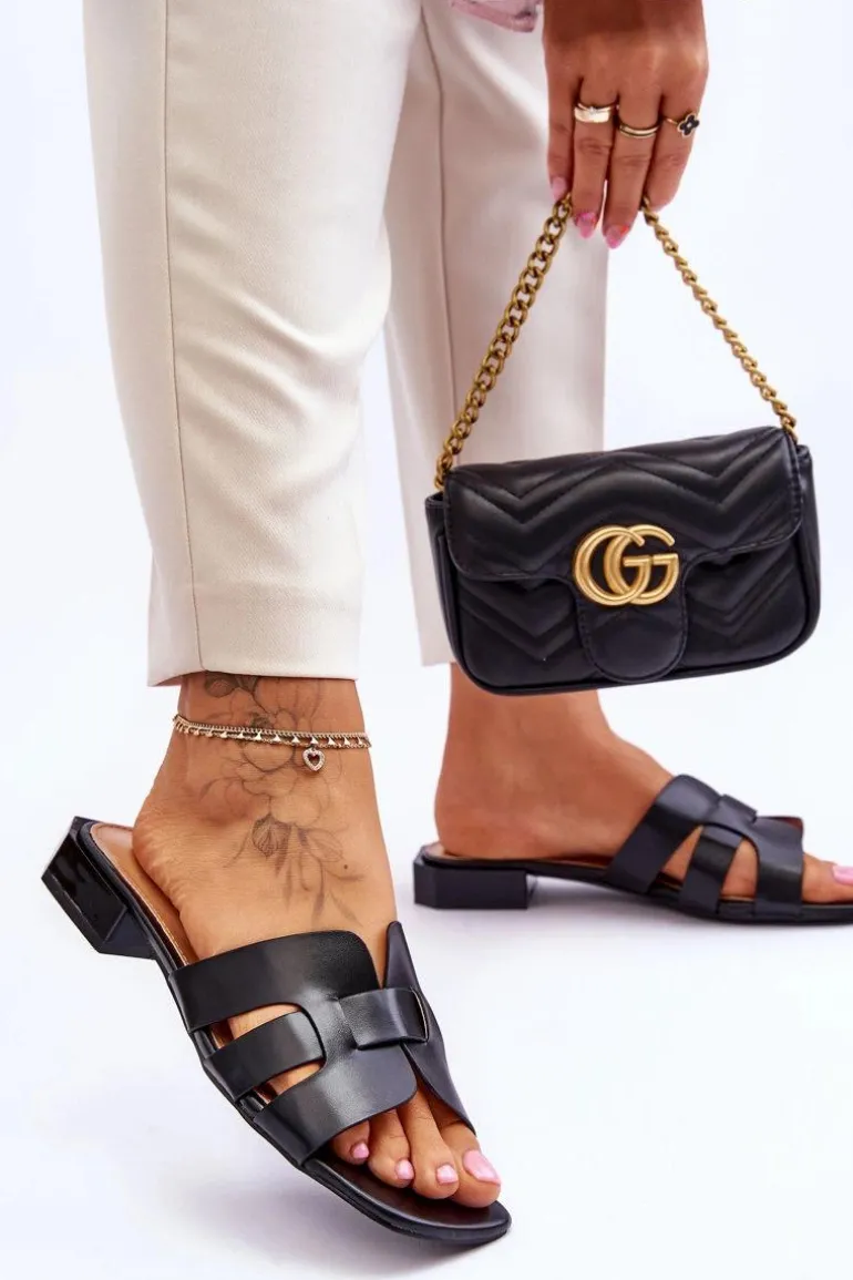Klasyczne klapki damskie zostały wykonane z ekologicznej skóry. Osadzone na modnym, płaskim obcasie. Klapki posiadają wycięcia w cholewce. Nosek jest odkryty, kwadratowy. Wygodna wkładka z eko skóry zapewni komfortowe użytkowanie obuwia. Idealne na co dzień, na spacer, do pracy czy do miasta! Przy wyborze rozmiaru prosimy sugerować się tabelą rozmiarów.