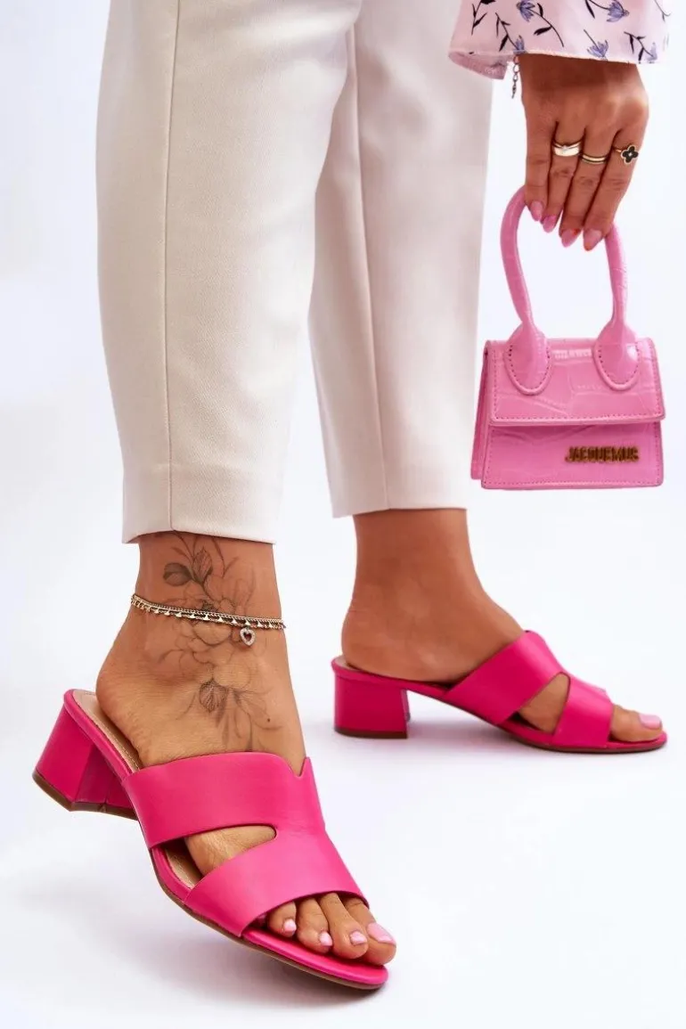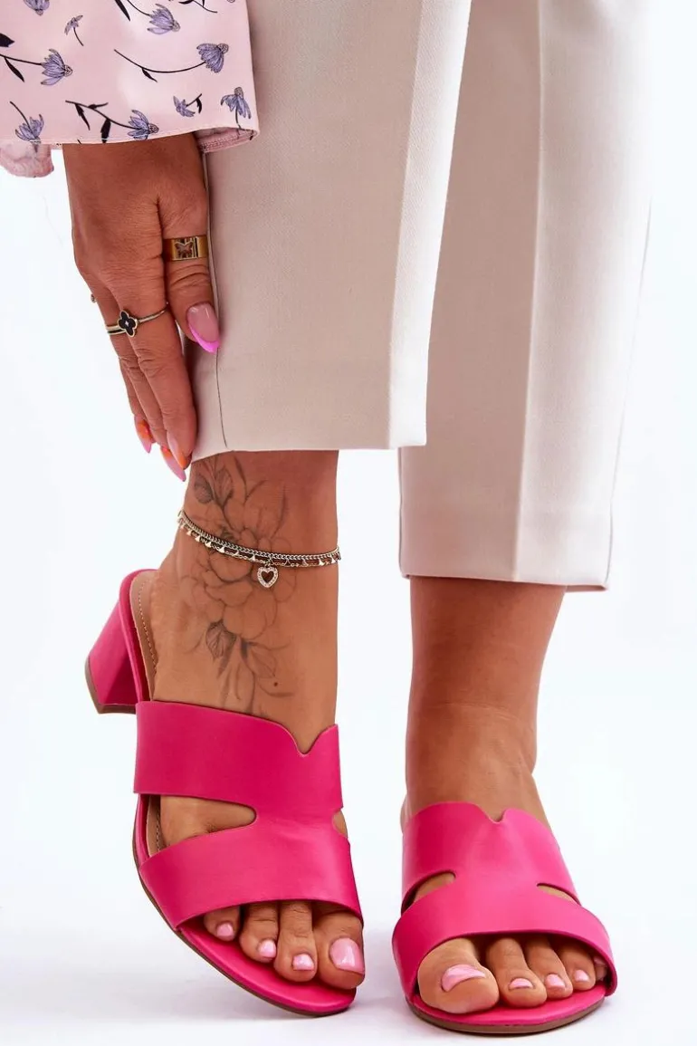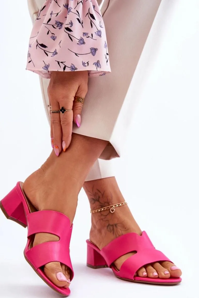 Klasyczne klapki na obcasie wykonane w całości z eko skóry. Posiadają wycięcia z boku cholewki. Miękka wkładka zapewni wygodę nawet przez cały dzień. Prosty, klasyczny fason osadzony na niskim słupku. Klapki te posiadają odkryty, zaokrąglony nosek. Ten moden świetnie sprawdzi się w wielu stylizacjach. Przy wyborze rozmiaru prosimy kierować się tabelą rozmiarów.