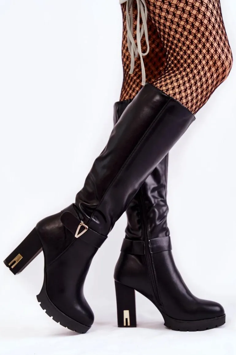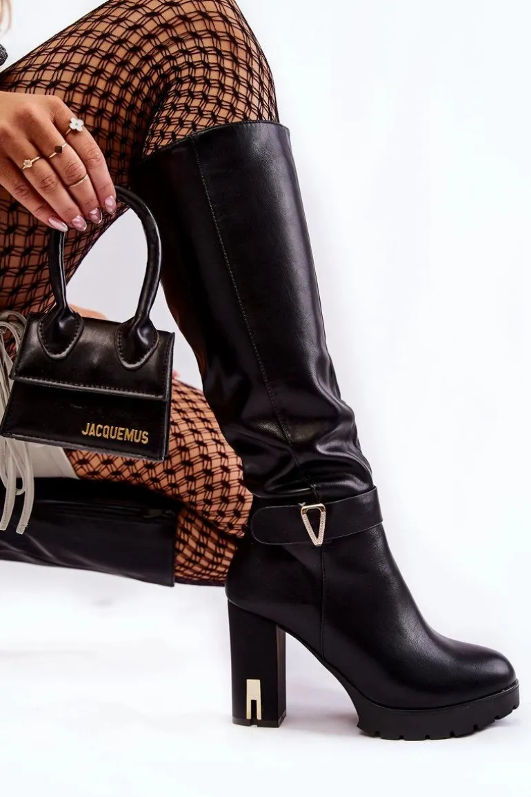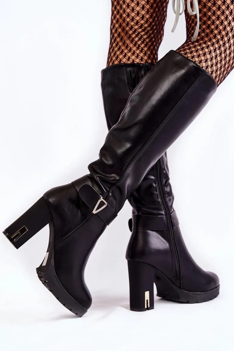 Kozaki damskie osadzone na zdobionym obcasie oraz platformie świetnie sprawdzą się w sezonie jesiennym! Wykonane z eko skóry. Posiadają pasek z ozdobą z imitacją cyrkonii. Kozaki zapinane na suwak. Posiadają w środku ocieplenie w postaci koca obuwniczego. Modny fason, który sprawdzi się w wielu stylizacjach! Przy wyborze rozmiaru prosimy sugerować się tabelą rozmiarów.