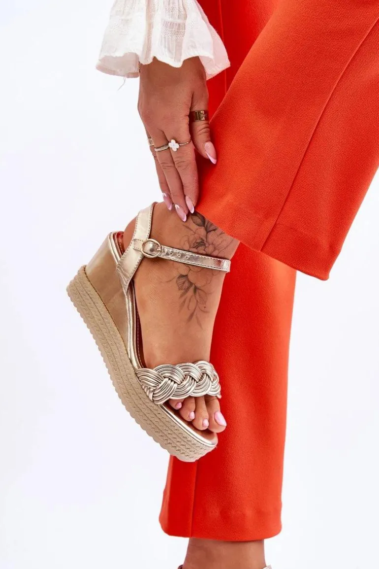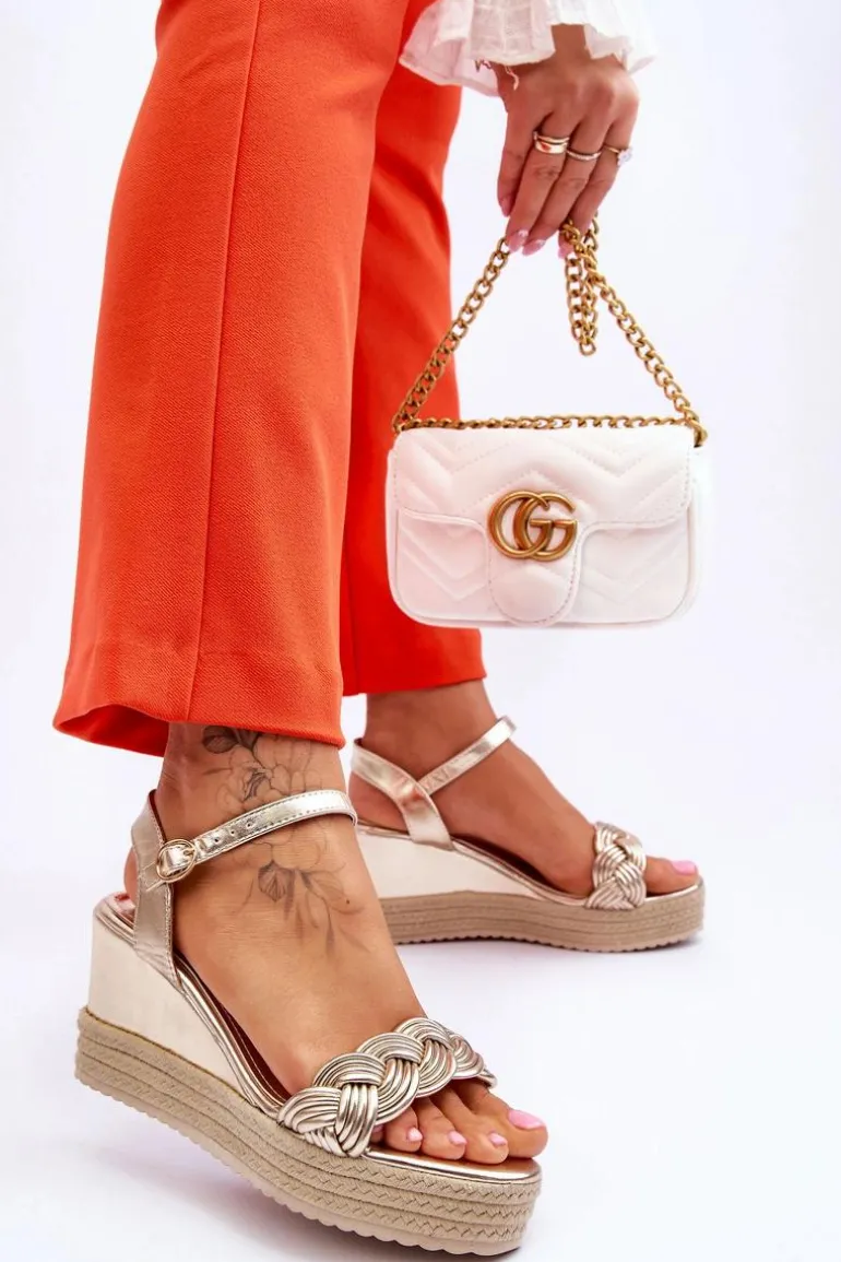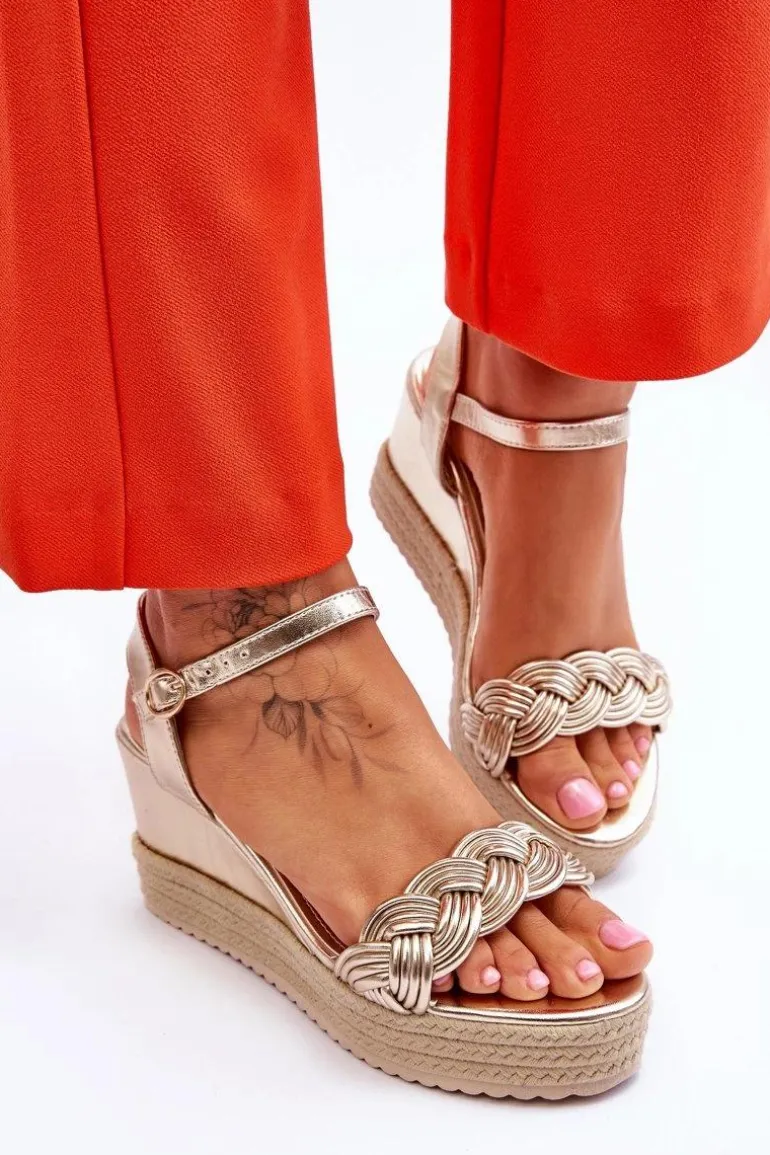Klasyczne Skórzane Sandały Na Koturnie Złote Denisse