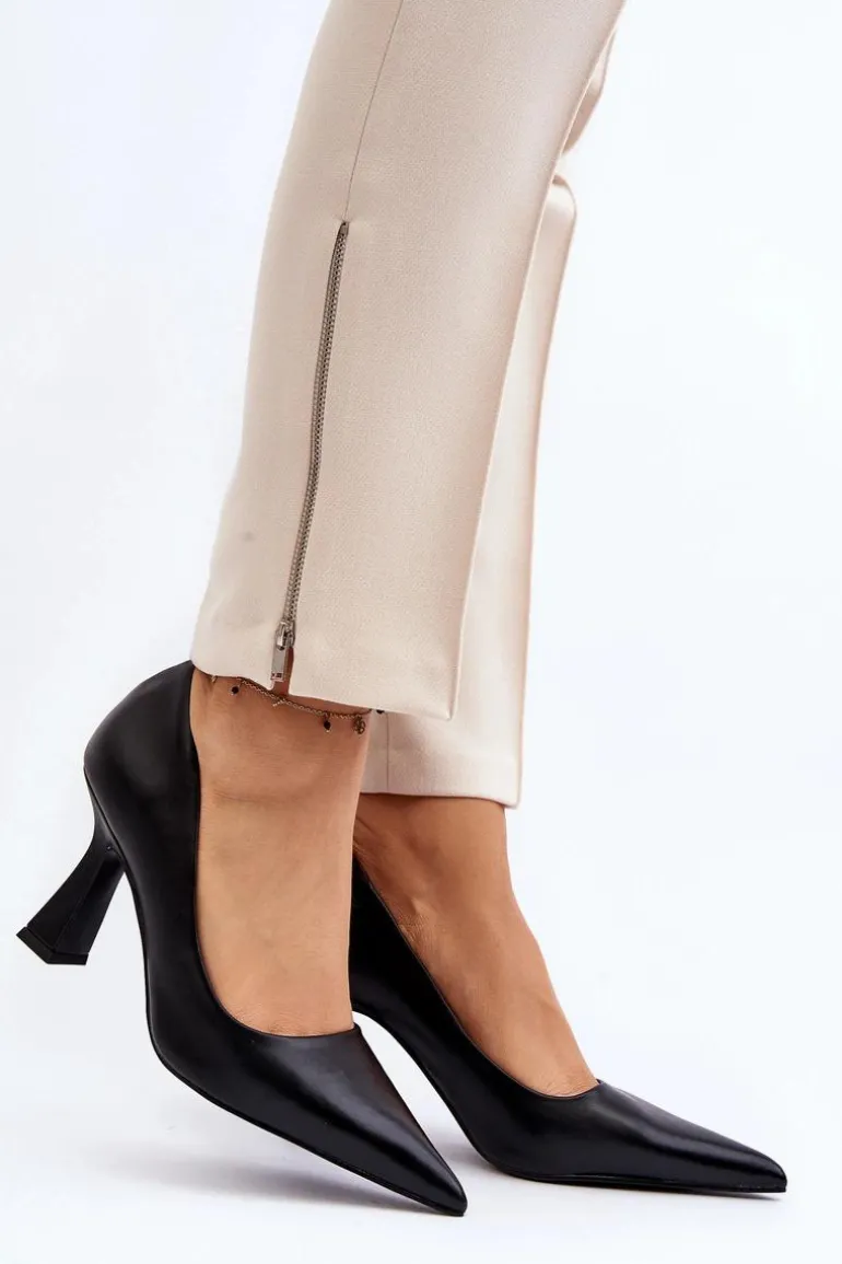 Szpilki powinny znaleźć się w szafie każdej kobiety. Model ten świetnie sprawdzi się zarówno do sukienek, jak i szerokich, eleganckich spodni. Wykonane z eko skóry. Noski w szpic optycznie wysmuklą nogi. Miękka wkładka zapewni komfort podczas użytkowania. Przy wyborze rozmiaru prosimy sugerować się tabelą rozmiarów.