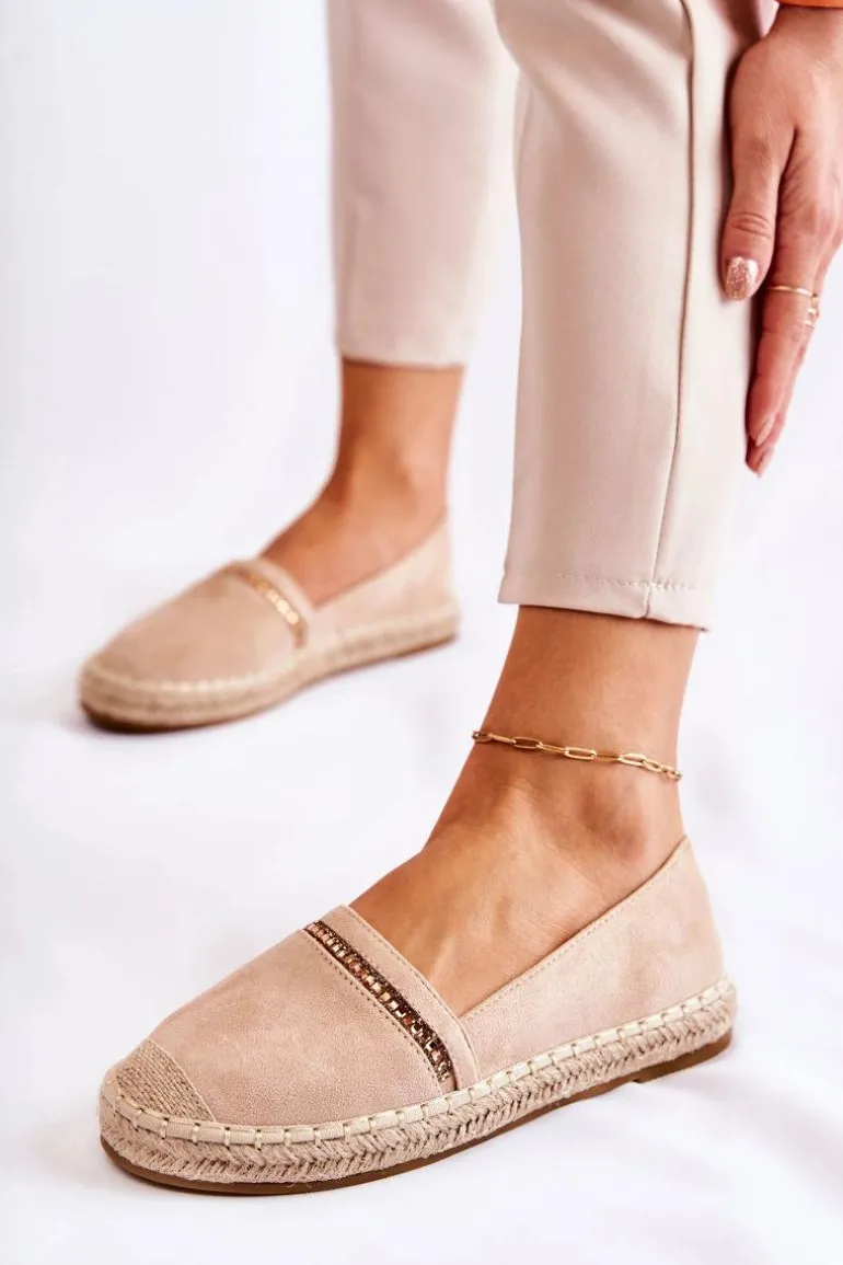 Klasyczne espadryle damskie zostały wykonane z przyjemnego w dotyku eko zamszu. Buty, które będą pasować do wielu Twoich stylizacji. Posiadają na nosku plecionkę. Osadzone na płaskim obcasie z antypoślizgową podeszwą. Buty posiadają wokół platformy pleciony, jutowy warkocz. Na przodzie znajduje się ozdoba. Wkładka Comfort jest bardzo miękka i wygodna podczas użytkowania. Koniecznie sprawdź całą naszą kolekcję damskich espadryli. Przy wyborze rozmiaru prosimy sugerować się tabelą rozmiarów.