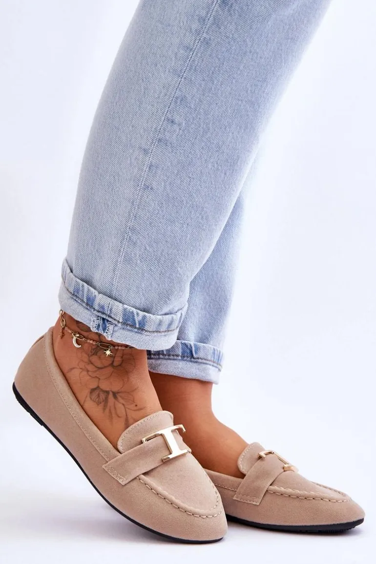 Klasyczne, wsuwane mokasyny damskie z pewnością sprawdzą się w wielu stylizacjach! To model, który powinien znaleźć się w Twojej szafie! Mokasyny posiadają pasek z ozdobą z tworzywa sztucznego. Miękka wkładka została wykonana z eko skóry i jest delikatnie perforowana. Mokasyny osadzono na płaskim obcasie. Przy wyborze rozmiaru prosimy sugerować się tabelą rozmiarów.
