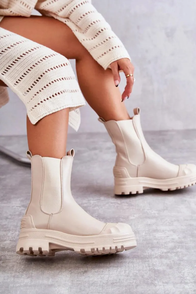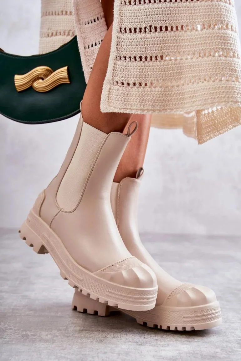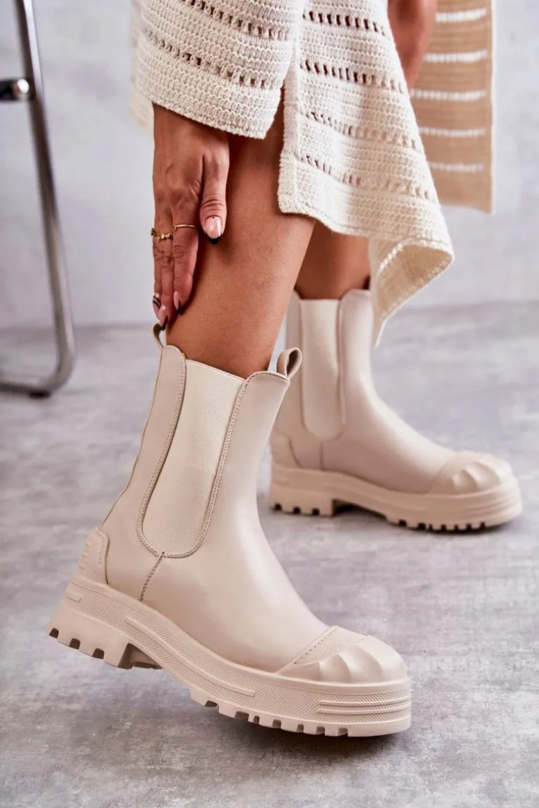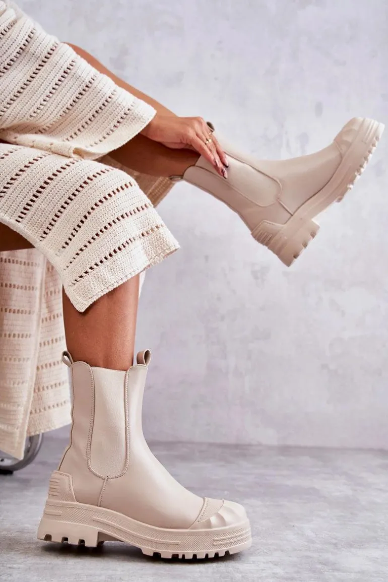 Klasyczne Wysokie Workery Botki Beżowe Bassti