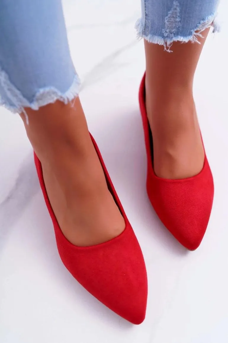 Klasyczne Zamszowe Czółenka Czerwone Rheya