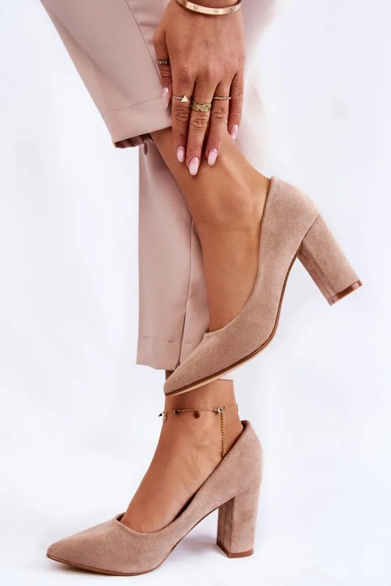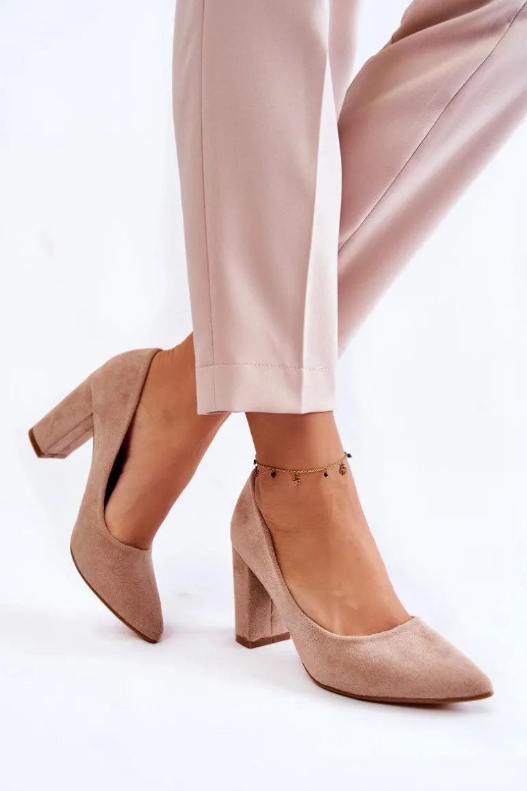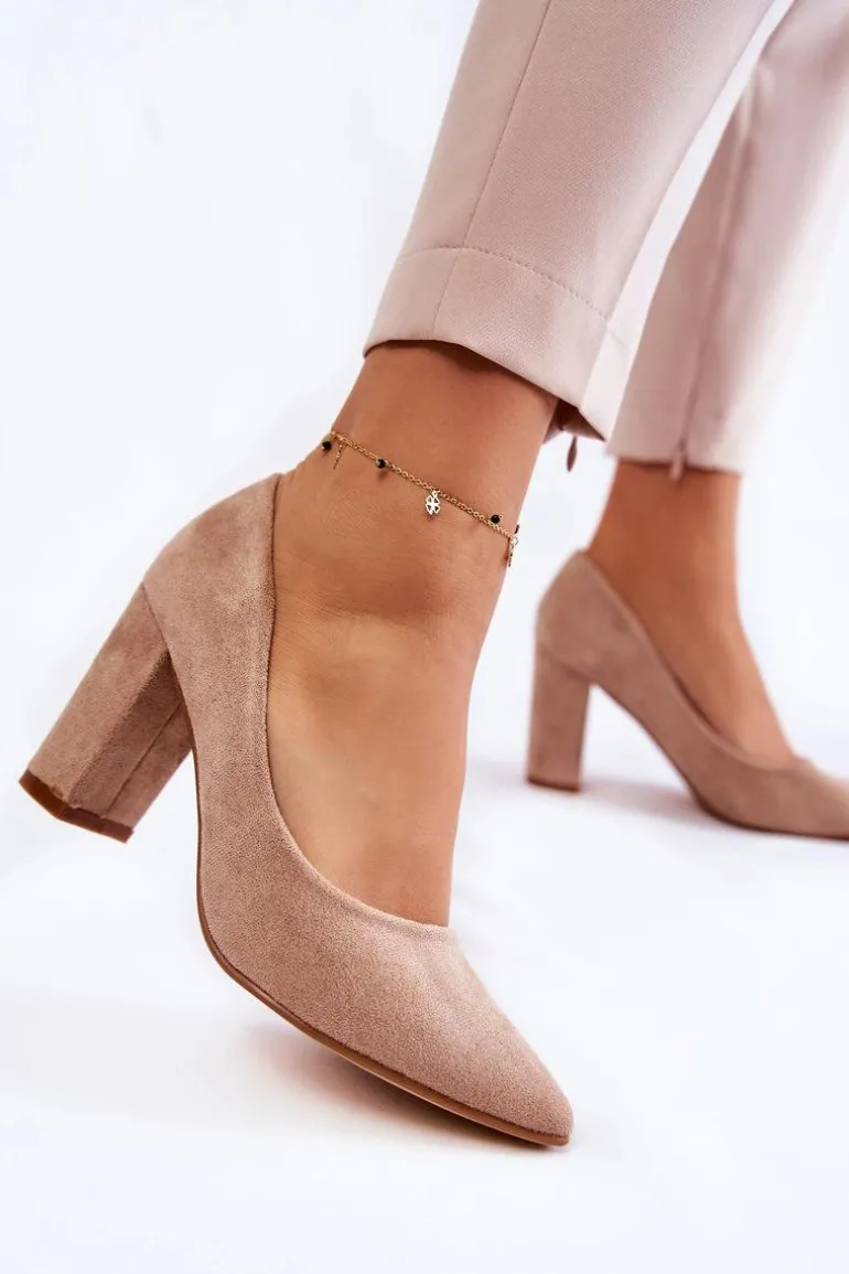 Klasyczne Zamszowe Czółenka Na Słupku Ciemnobeżowe Kendra