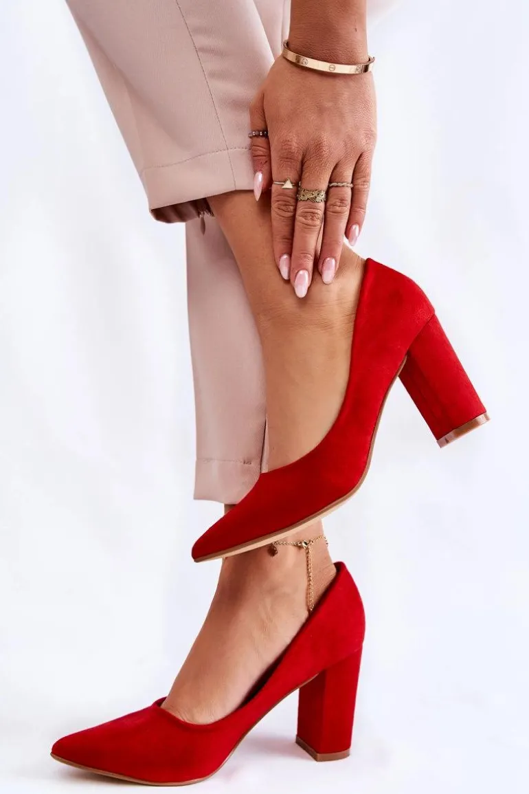 Klasyczne Zamszowe Czółenka Na Słupku Czerwone Kendra