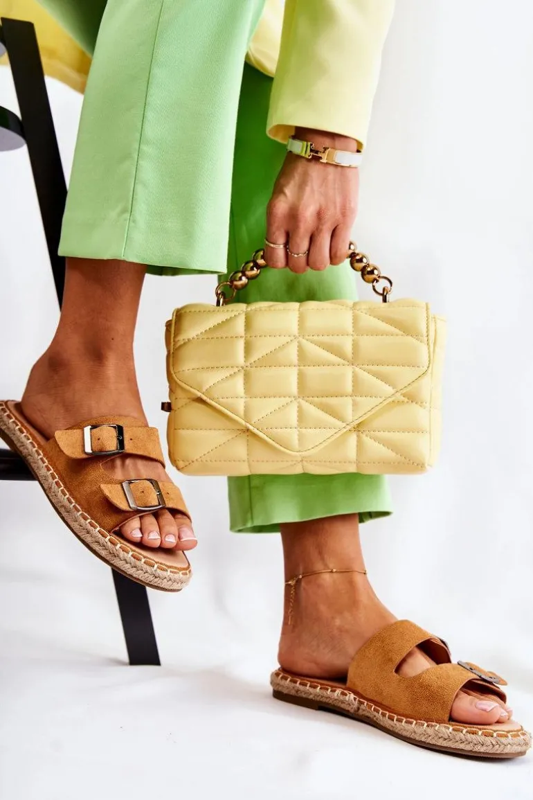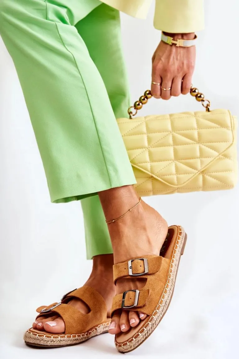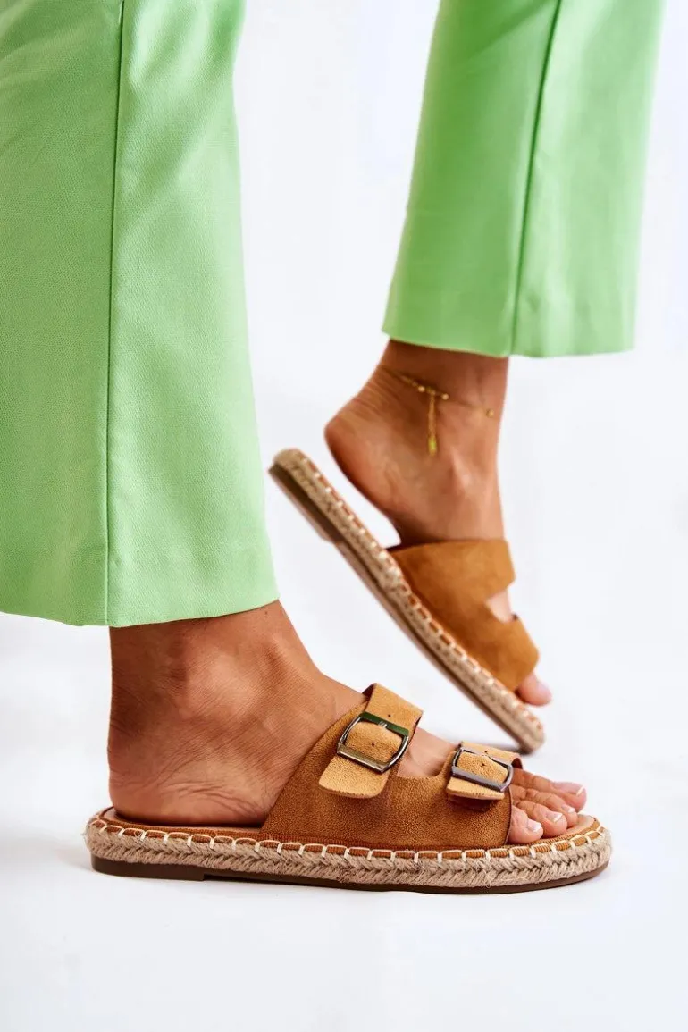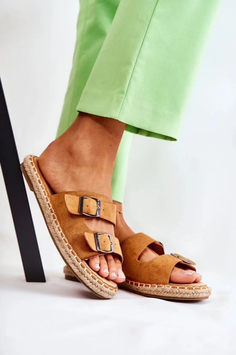 Klasyczne Zamszowe Klapki Damskie Camel Casilda
