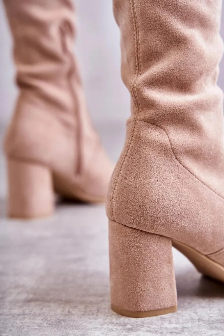 Klasyczne kozaki zostały wykonane z eko zamszu. Posiadają wiązanie na górze cholewki pozwalające na odpowiednią regulację. Kozaki osadzono na obcasie w postaci słupka. Model wsuwany z dodatkowym zamkiem. W środku ocieplone na wysokości stopy. Świetny model do sukienek mini czy spódniczek. Koniecznie powinnaś je mieć! Przy wyborze rozmiaru prosimy sugerować się tabelą rozmiarów.