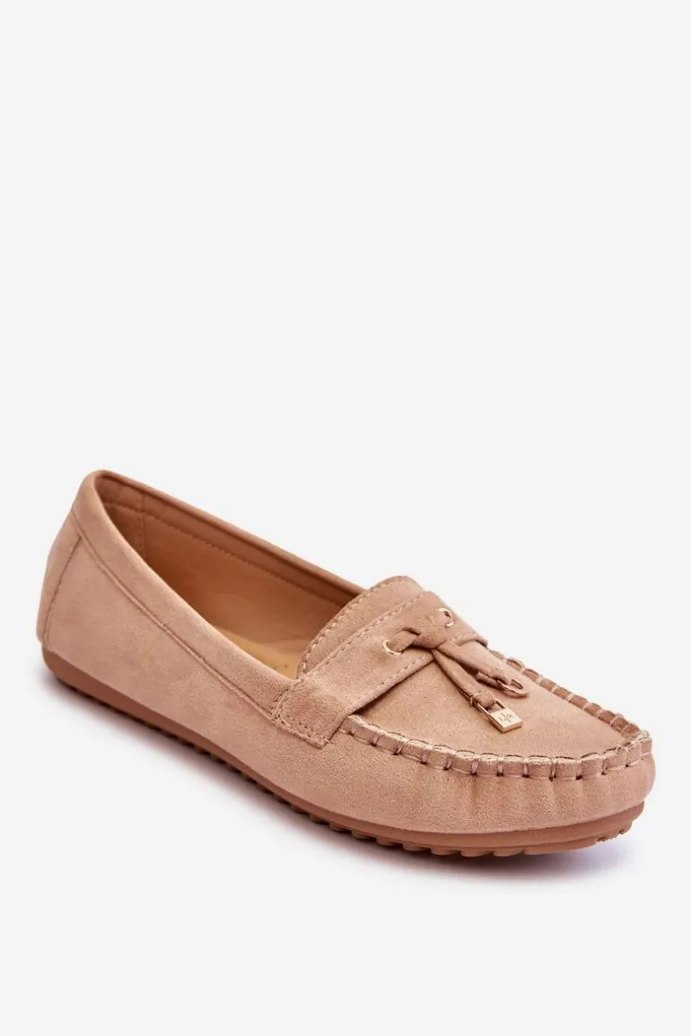 Klasyczne mokasyny damskie zostały wykonane z eko zamszu. Model ten posiada na przodzie ozdobne paseczki z kłódką i kółeczkiem. Mokasyny osadzono na delikatnej platformie. Miękka wkładka zapewni komfort podczas użytkowania obuwia. Model ten posiada lekko zaokrąglony nosek. Idealne do wielu stylizacji w sezonie wiosenno-jesiennym! Przy wyborze rozmiaru prosimy sugerować się tabelą rozmiarów.