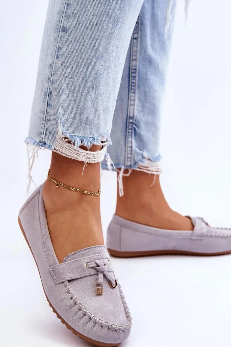Klasyczne mokasyny damskie zostały wykonane z eko zamszu. Model ten posiada na przodzie ozdobne paseczki z kłódką i kółeczkiem. Mokasyny osadzono na delikatnej platformie. Miękka wkładka zapewni komfort podczas użytkowania obuwia. Model ten posiada lekko zaokrąglony nosek. Idealne do wielu stylizacji w sezonie wiosenno-jesiennym! Przy wyborze rozmiaru prosimy sugerować się tabelą rozmiarów.