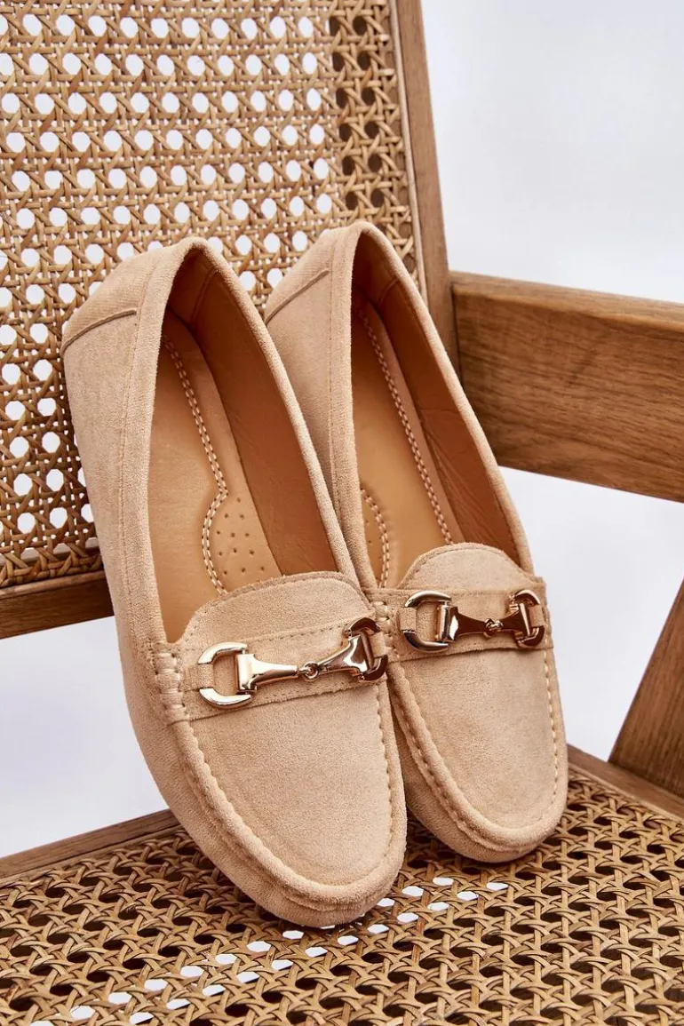 Klasyczne Zamszowe Mokasyny Z Ozdobą Beżowe Arla