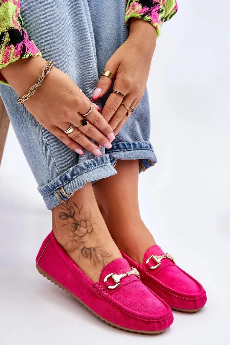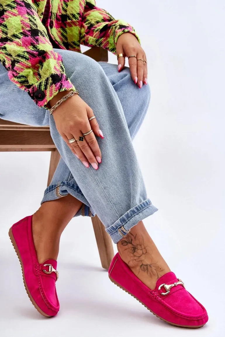Klasyczne Zamszowe Mokasyny Z Ozdobą Fuksja Arla