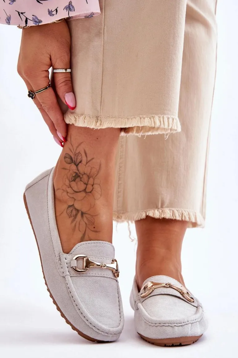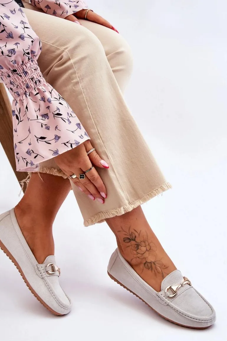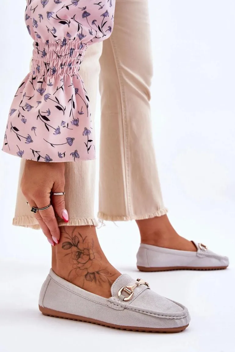 Klasyczne Zamszowe Mokasyny Z Ozdobą Szare Arla