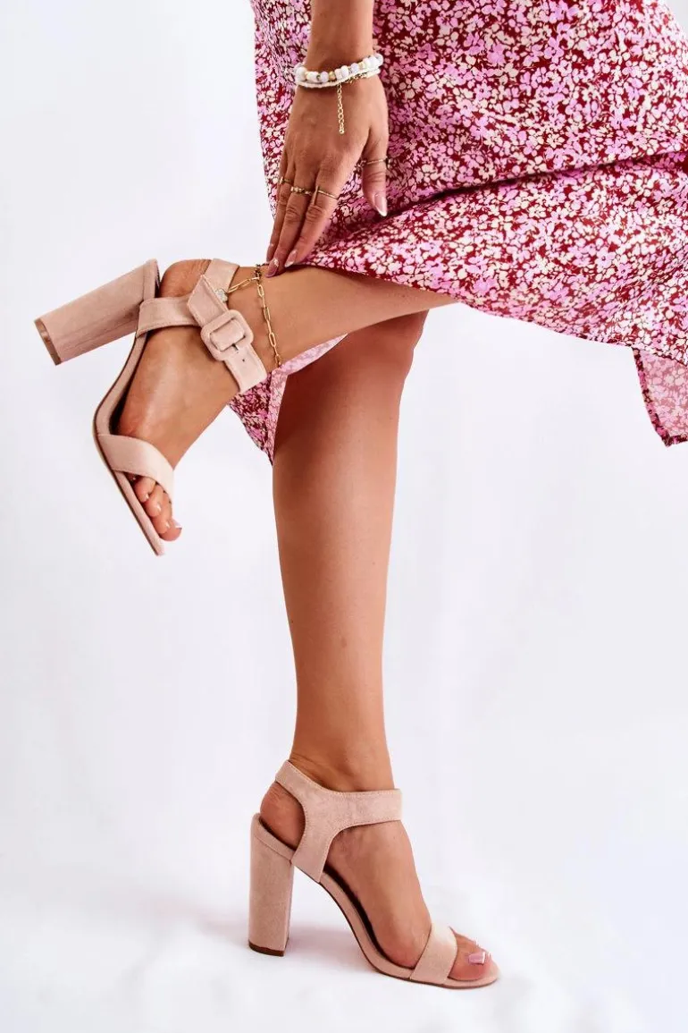 Klasyczne Zamszowe Sandały Beżowe Nelia