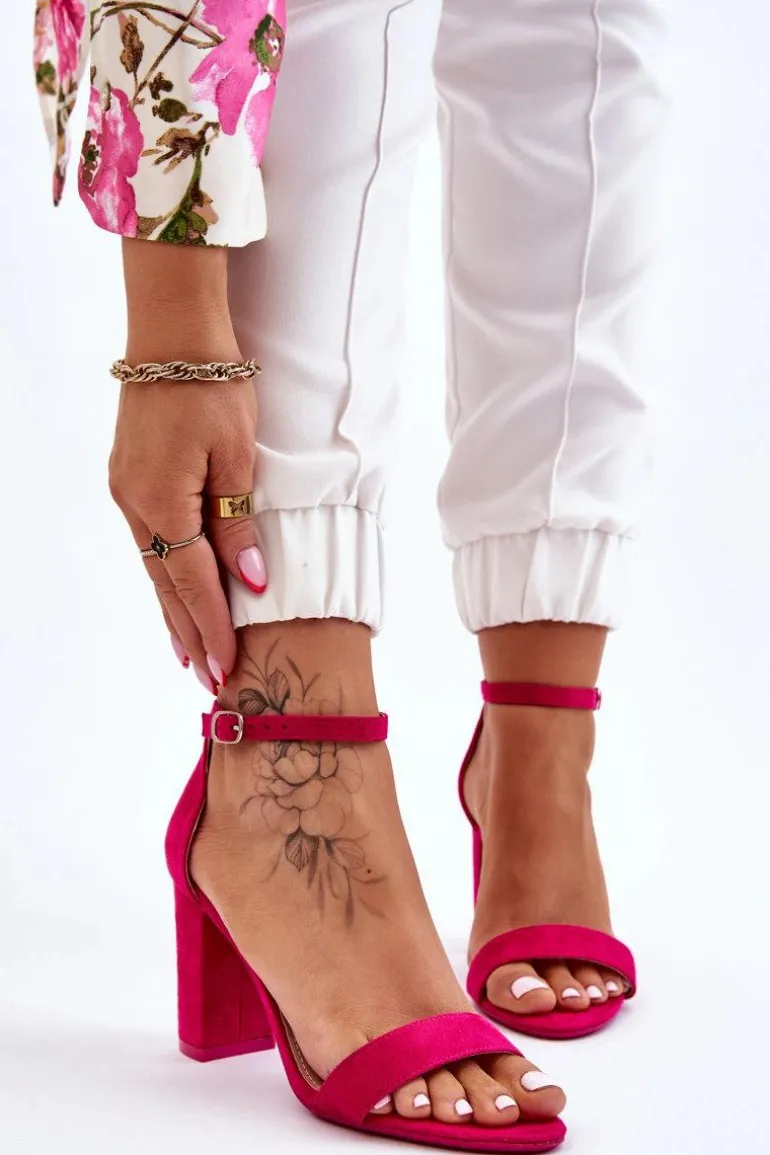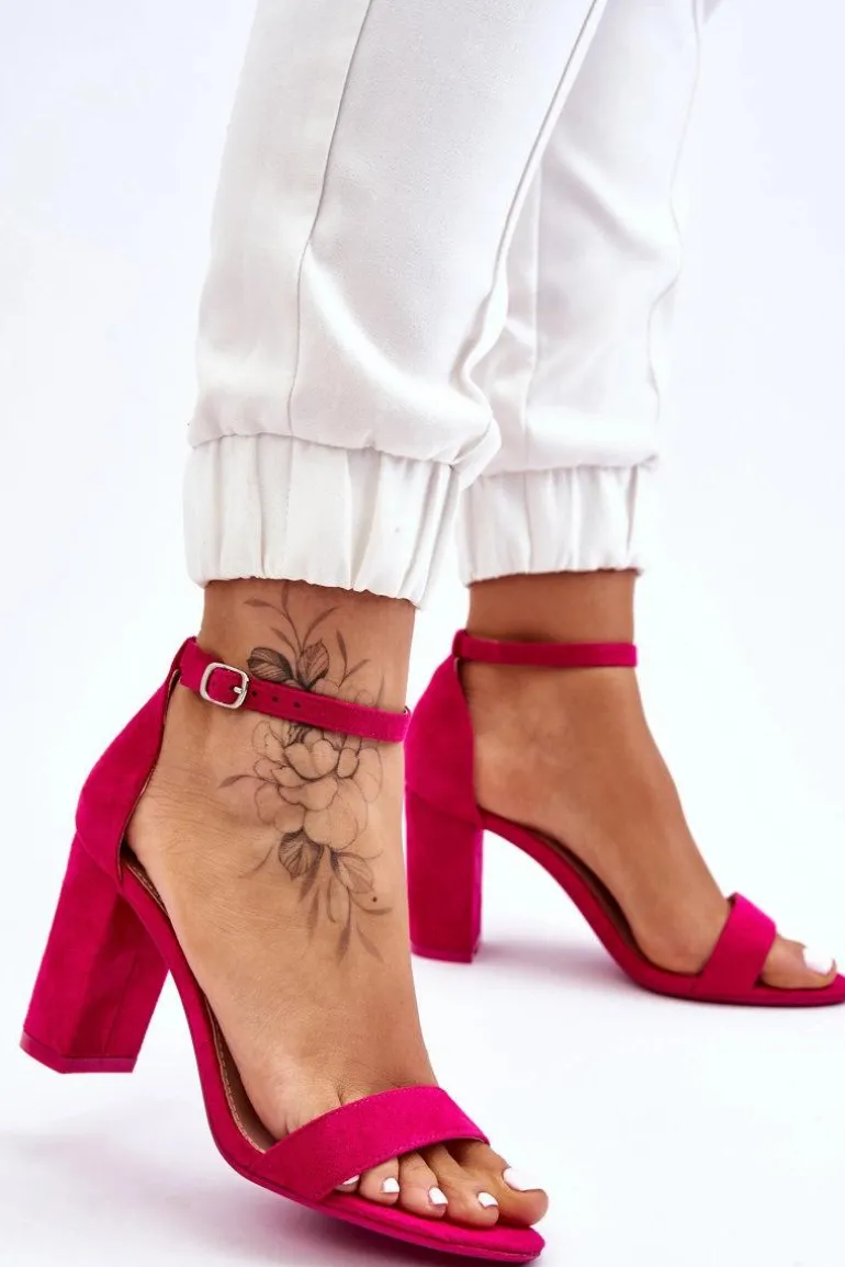 Klasyczne sandały damskie osadzone na obcasie w postaci stabilnego słupka. Buty wykonane zostały z eko zamszu. Komfort podczas użytkowania zapewni miękka, eko skórzana wkładka. Sandałki są zapinane na regulowany pasek ze sprzączką. Buty te posiadają odkryty, migdałowy nosek. Usztywniany zapiętek świetnie ustabilizuje stopę. Koniecznie sprawdź całą naszą kolekcję sandałek na obcasie! Przy wyborze rozmiaru prosimy sugerować się tabelą rozmiarów.
