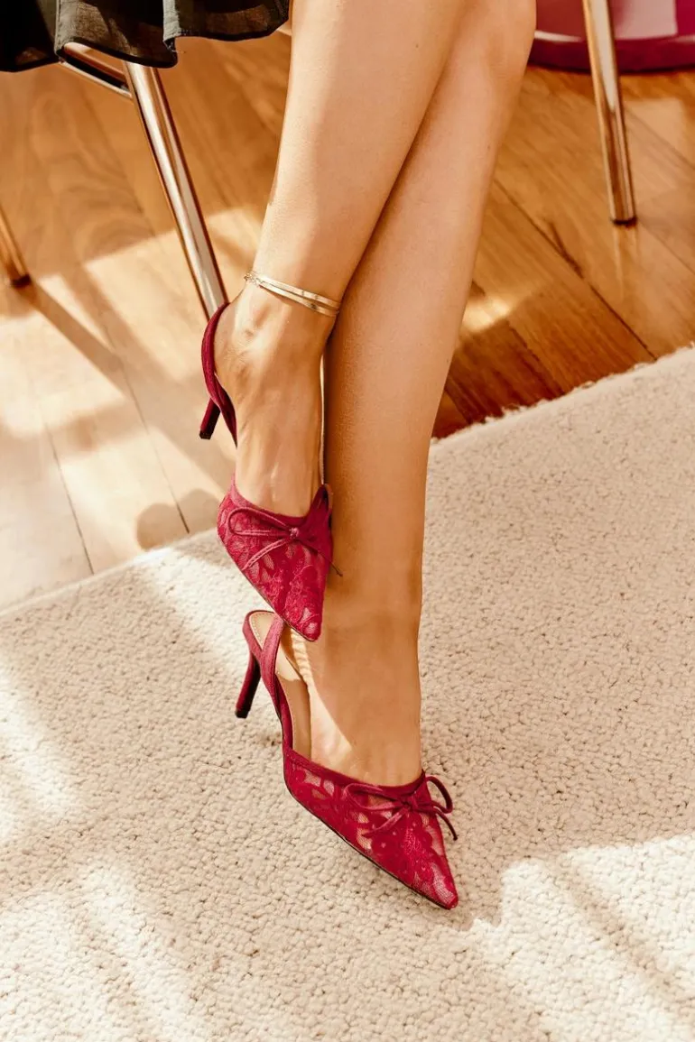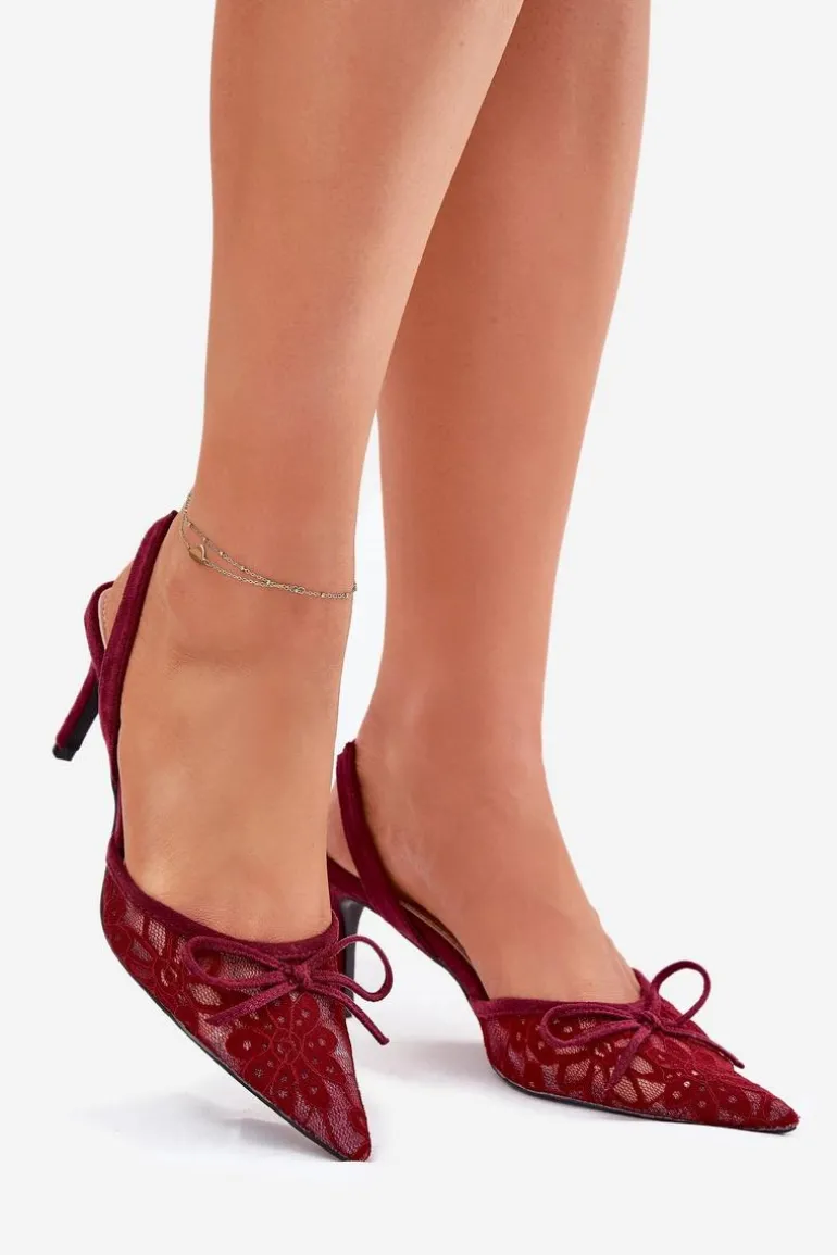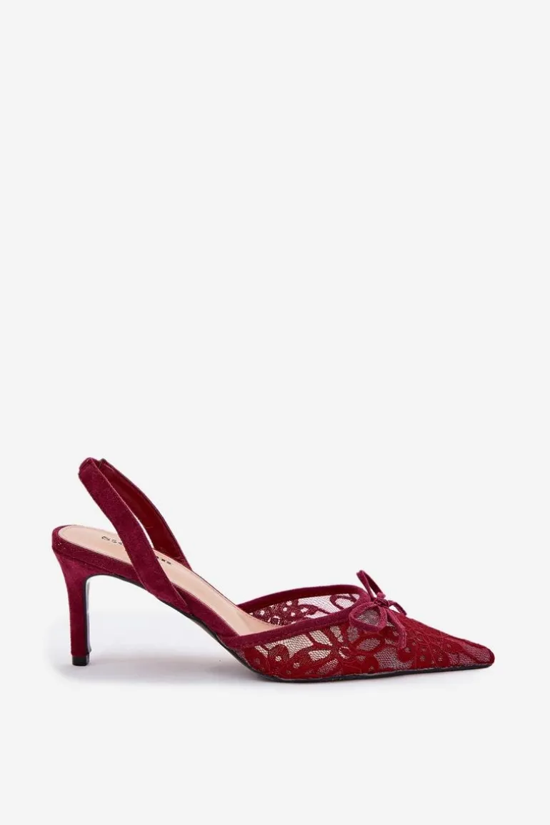 Koronkowe szpilki damskie to elegancka propozycja na wyjątkowe okazje. Model z odkrytą piętą i szpiczastymi noskami podkreśla smukłość sylwetki, a subtelna kokardka dodaje im delikatnego uroku. Idealne na wieczorne wyjścia czy formalne uroczystości, łączą stylowy wygląd z kobiecym wdziękiem. Przy wyborze rozmiaru prosimy sugerować się tabelą rozmiarów.