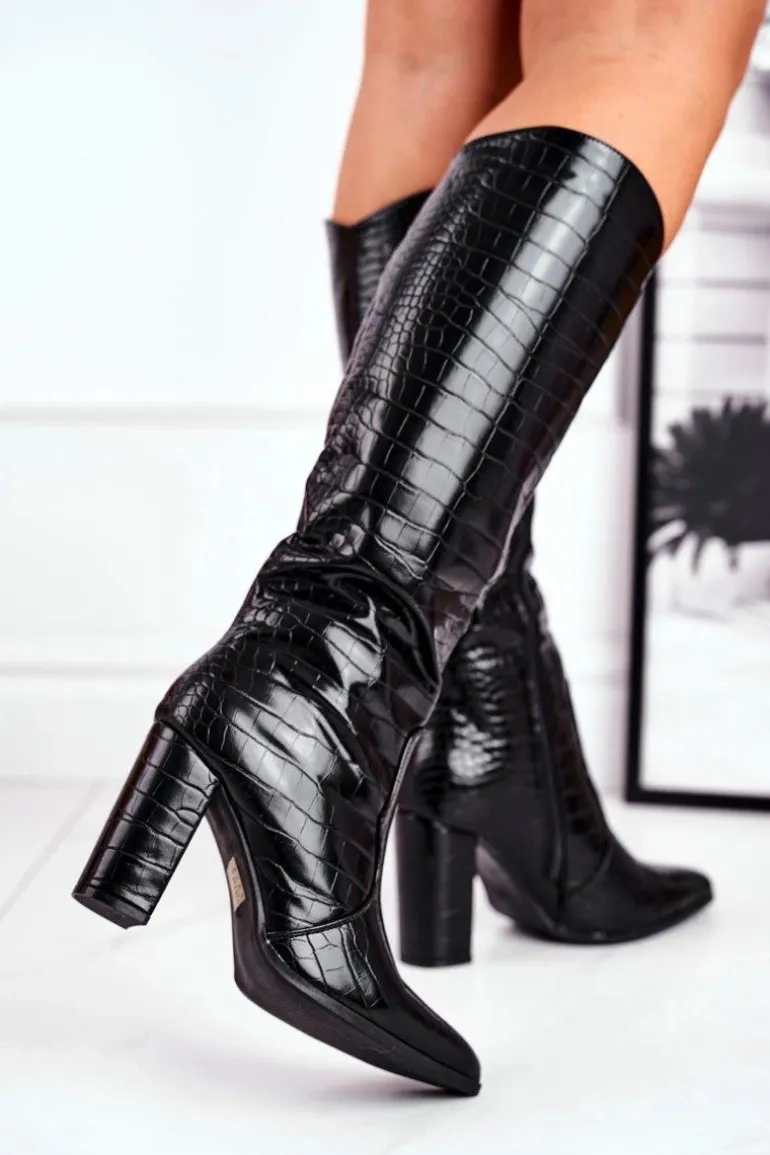 Kozaki Damskie Ciepłe Czarne Priority