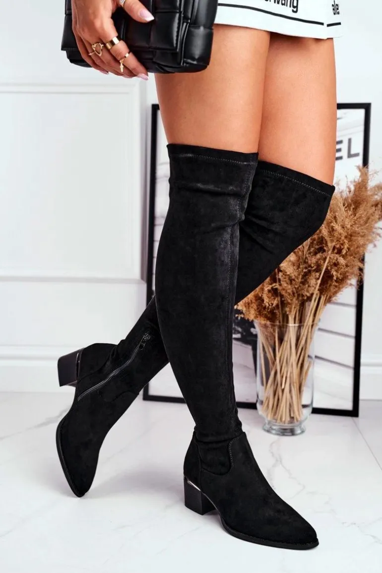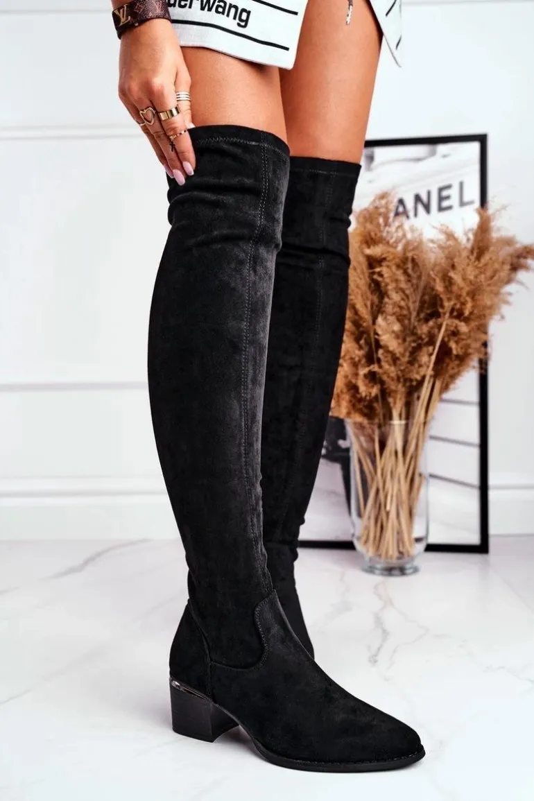 Kozaki Damskie Do Kolana Eko-Zamsz Czarne Indigo