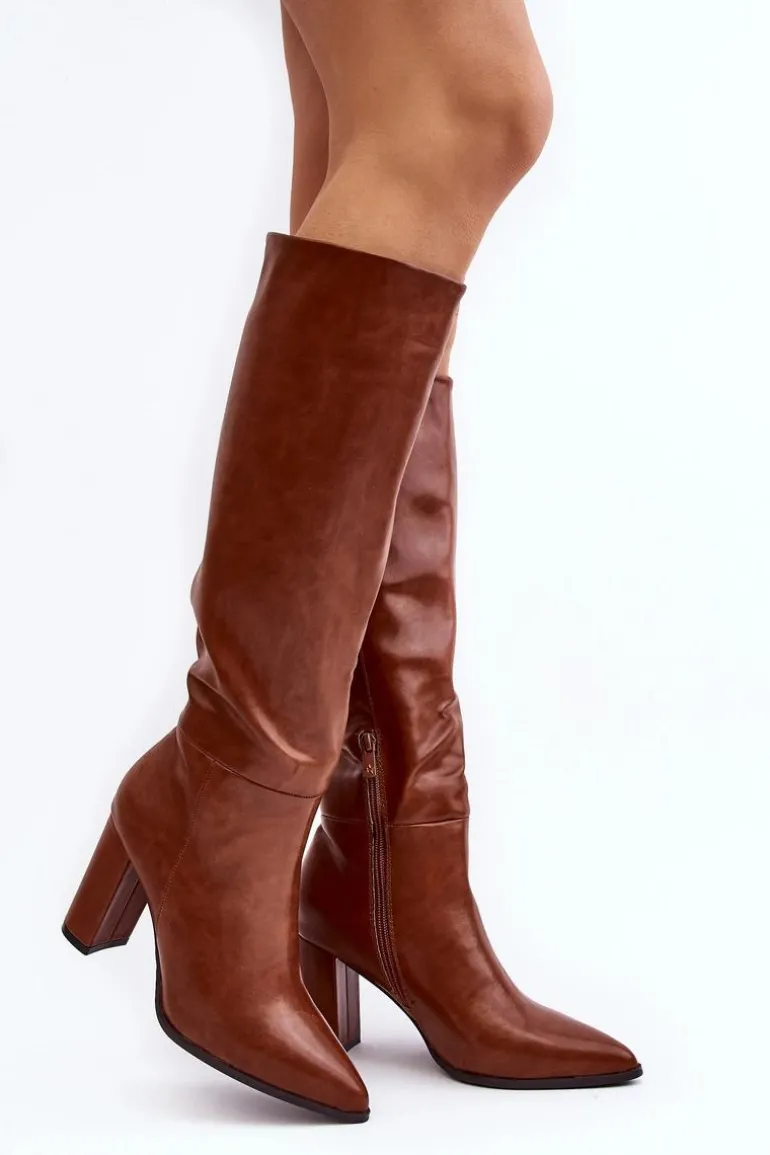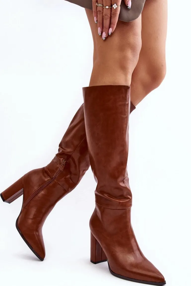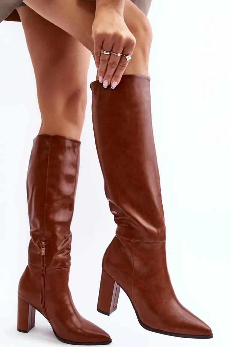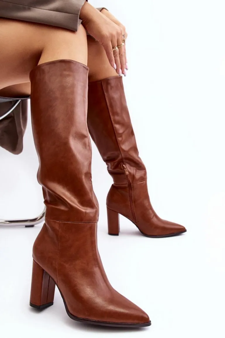 Kozaki Damskie Do Kolana Na Słupku Camel Fiminna